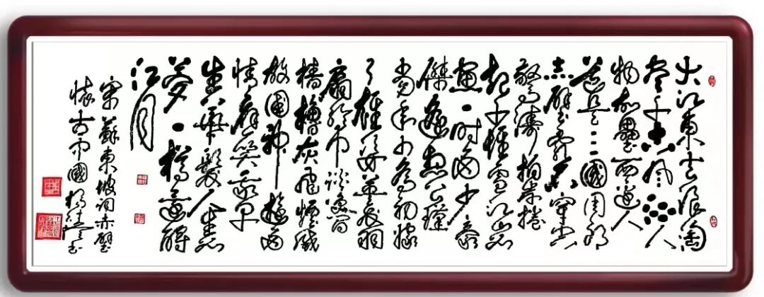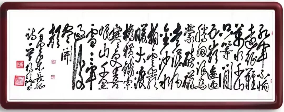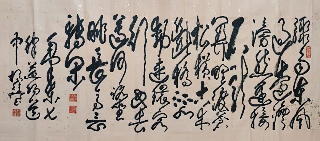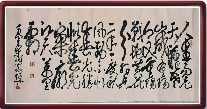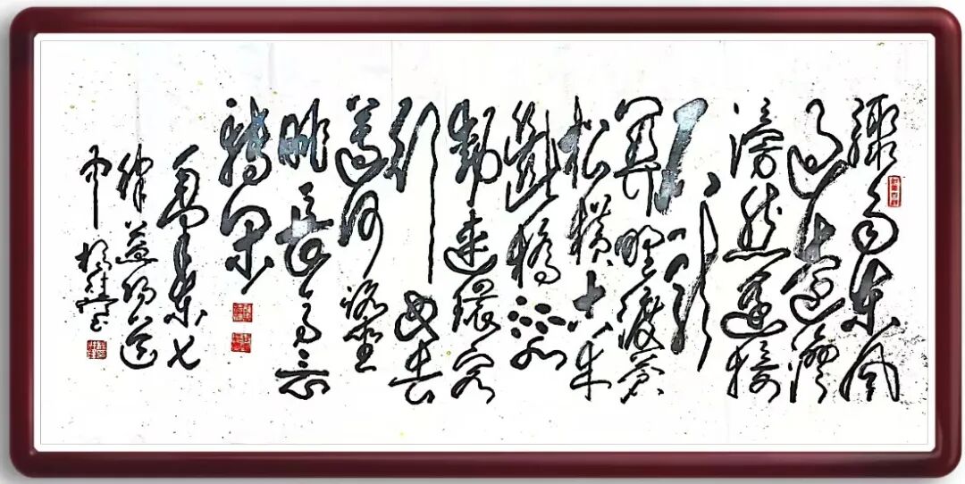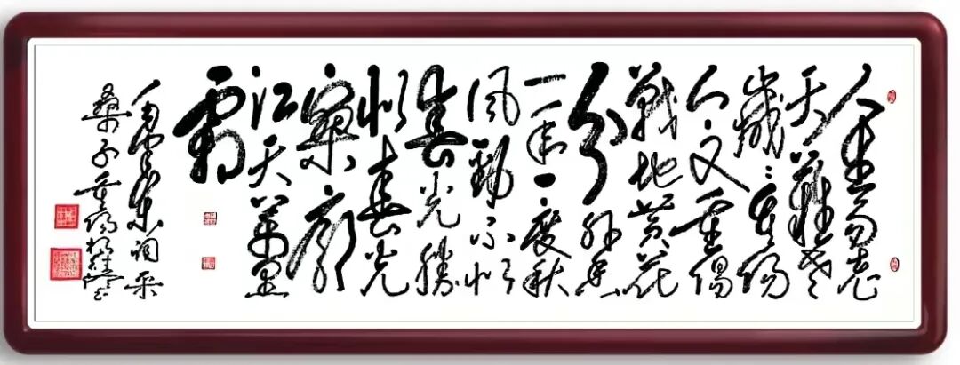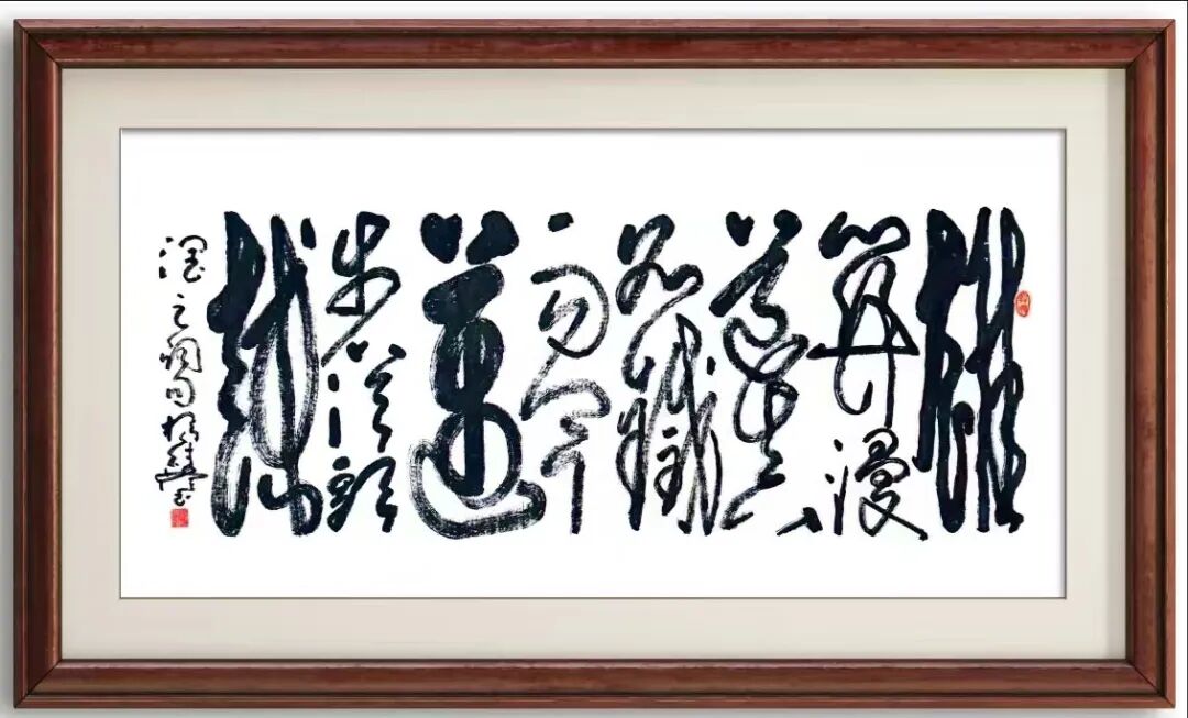 观杨财隆先生之笔墨功夫,更应体察其笔墨背后深厚的文化修成。数十载提笔从容,先生从不屑以炫技为能事,而是始终致力于汲取古典文化之精粹,涵养心经之内蕴。其书法信手挥洒,丝毫不露刻意匠气,仿佛每一笔都是经过了心源升华,从而自然流露出了一种苍劲与圆融相得益彰的文人书风。尤其在榜书创作中,杨财隆先生更是构建出了一套独具韵味的取势体系。斗笔蘸墨,厚重而行,不追求形式上的险绝跌宕,亦不作外在矫饰,而是唯以豪迈精神贯注全篇。笔下所书,是胸中浩然之气;墨中所显,则是精、气、神浑然一体的大家境界!