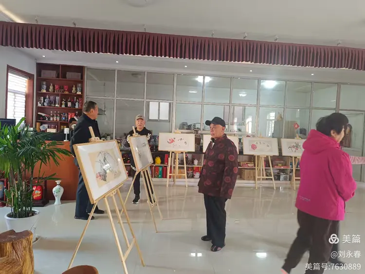 王春荣的《菊花绽放》,田根承的《荷花秋韵》,车春的《深秋景色》,以及那事事如意等10几幅书法绘画,体现出重阳节的独具特色。