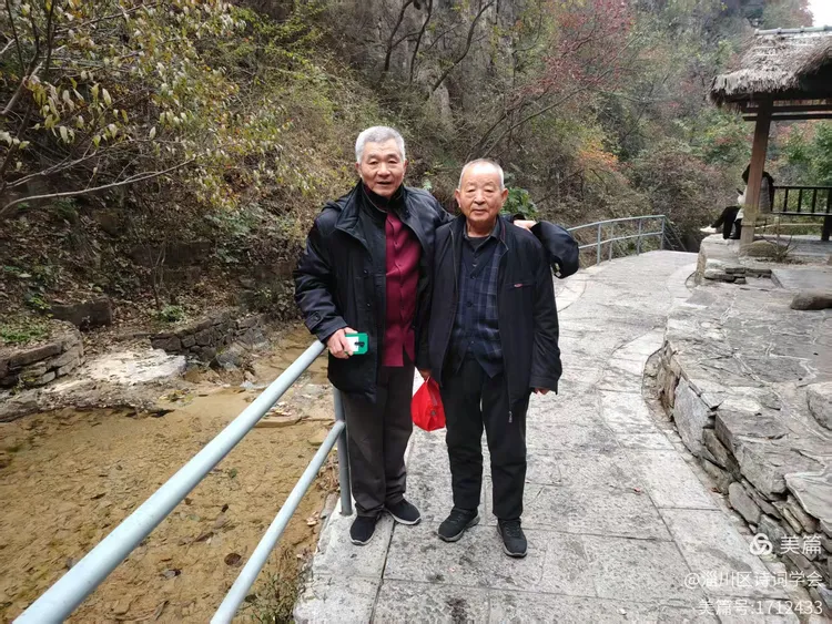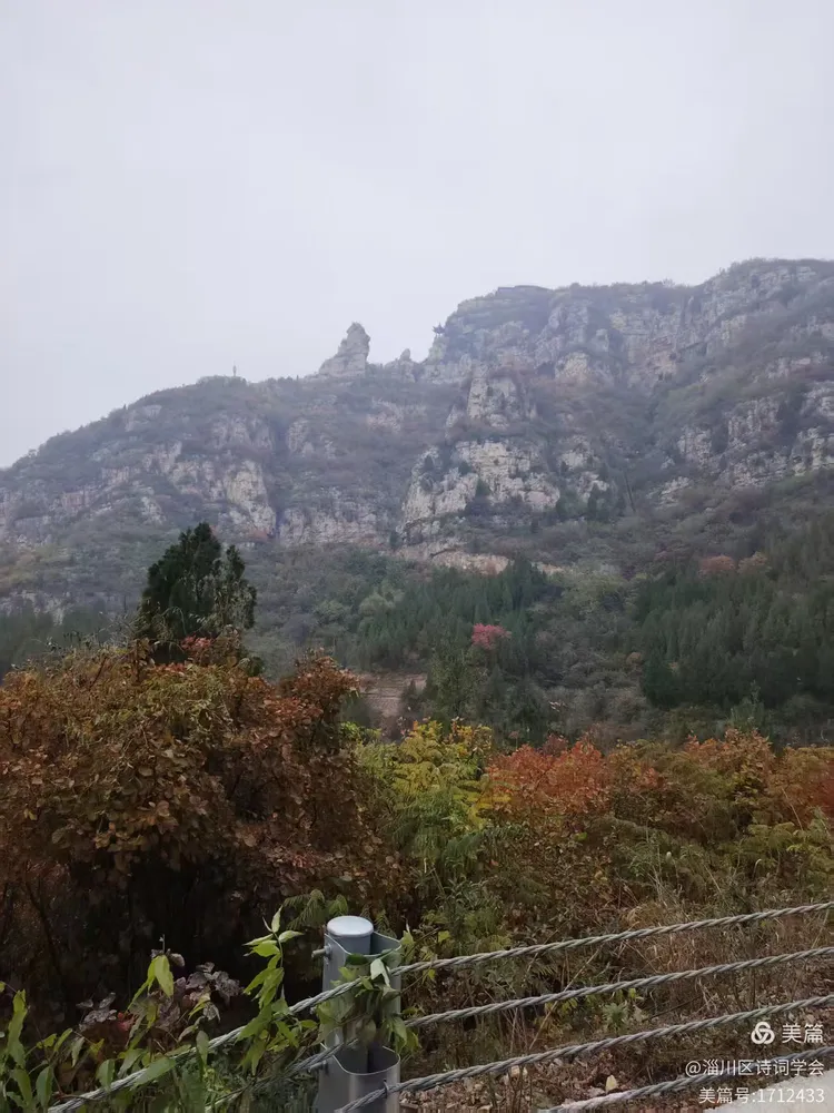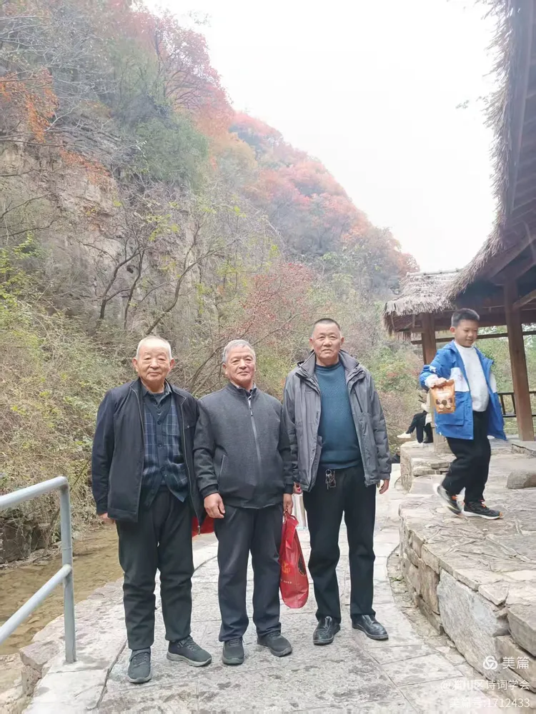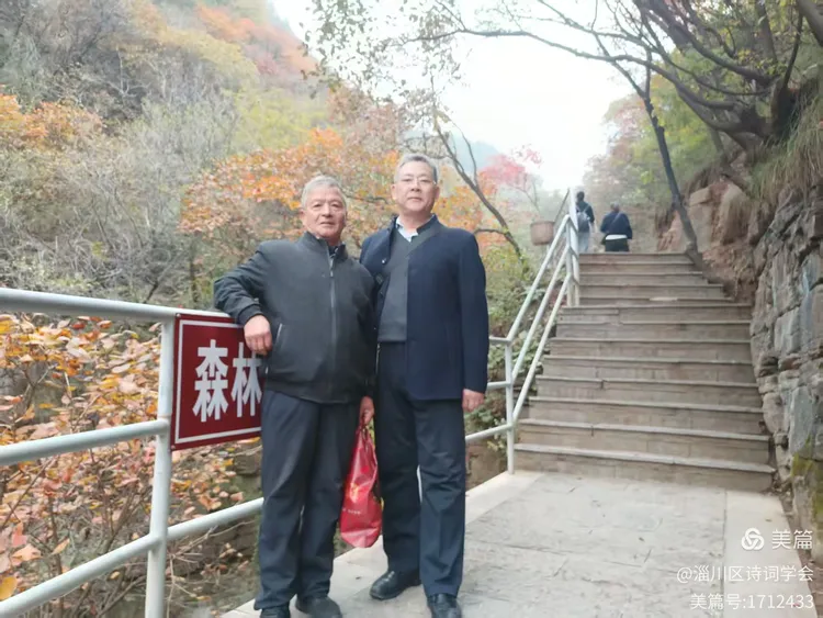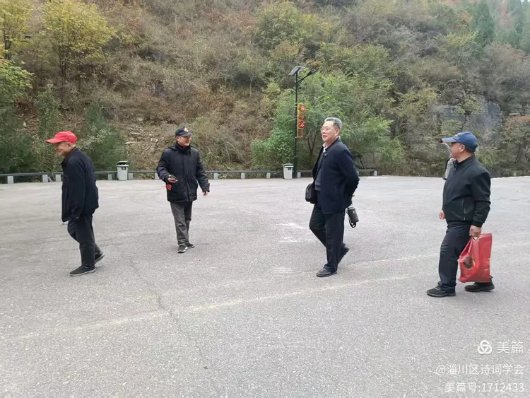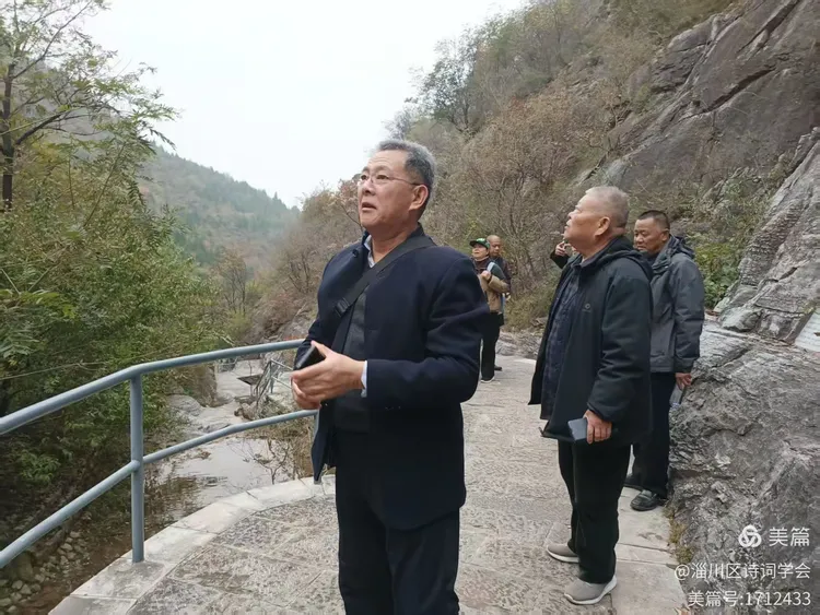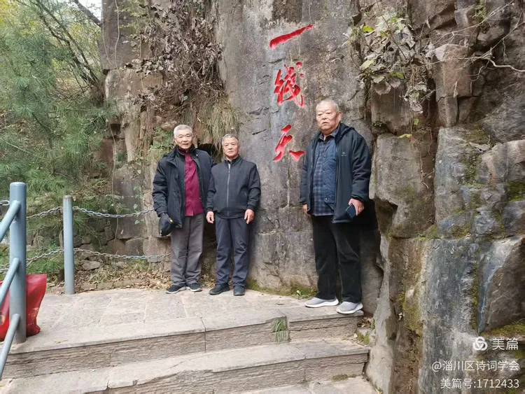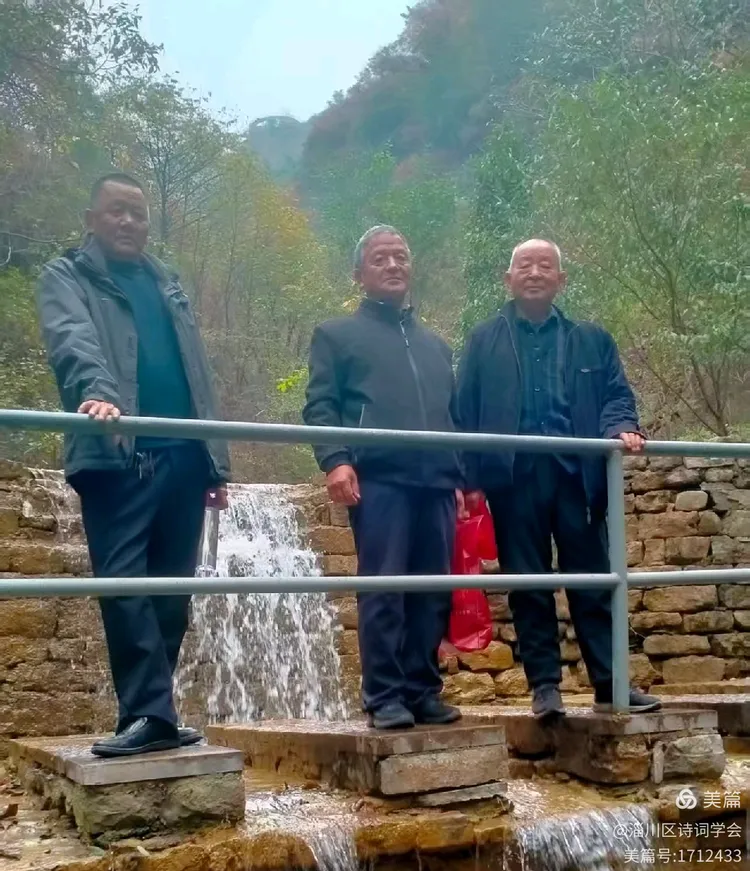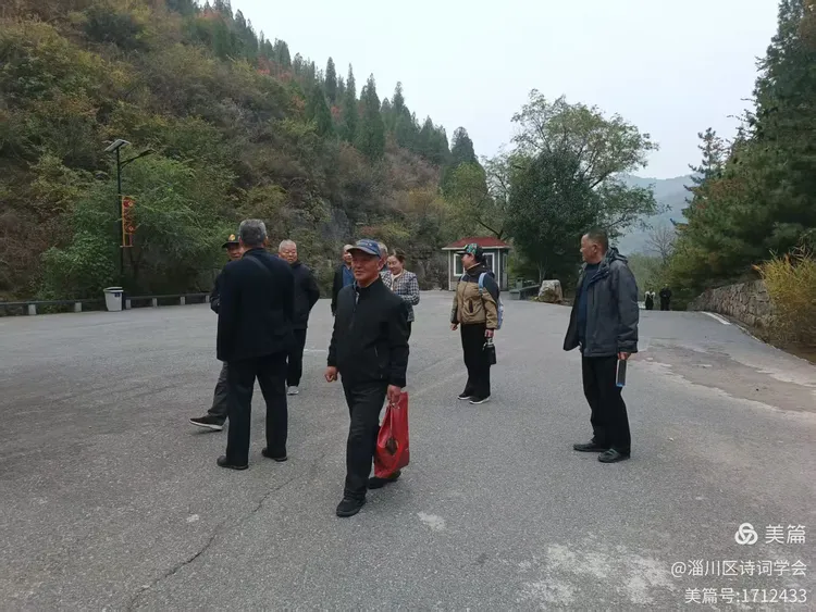 不多时,登山的队伍在轻风中出发。一路欢声笑语,诗兴盎然。穿过“三连潭”,越过“一线天”,山光水色,层林尽染。红叶纷飞如霞,溪水潺潺,瀑布似雪,诗友们拍照留念,吟咏成章。