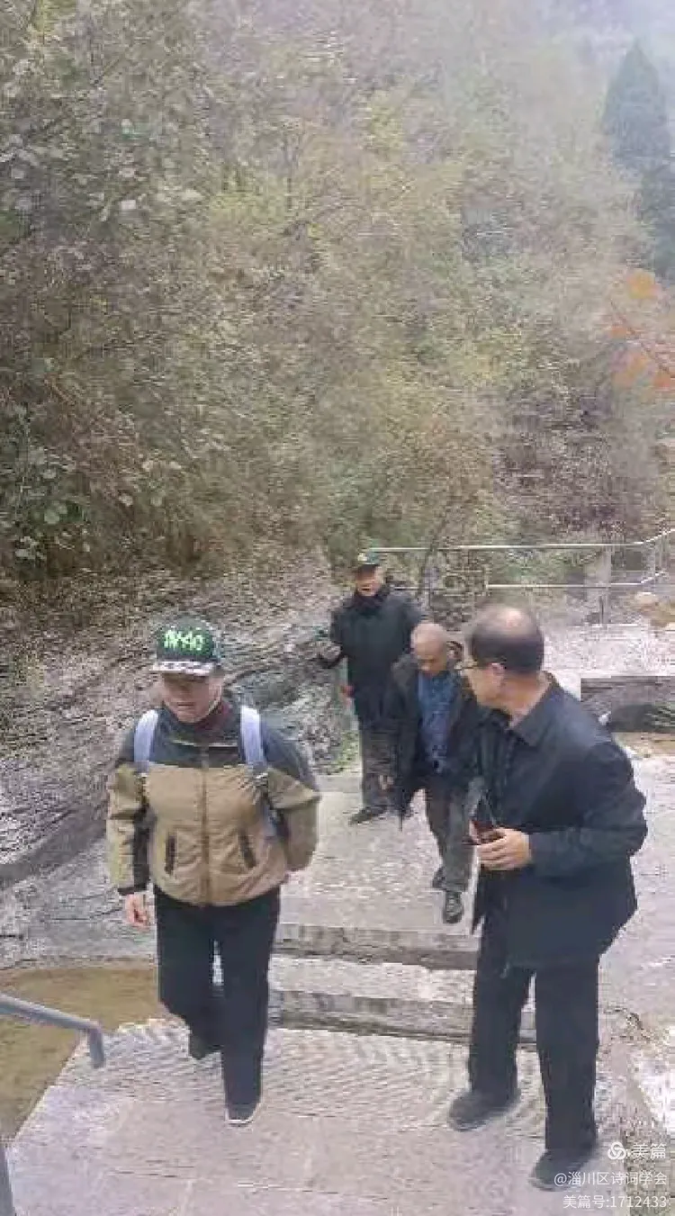 “景色怡人,心旷神怡”,近八旬的李世文老师依旧步履矫健、精神焕发,令人敬佩。行至半山,天忽飘起细雨,丝丝缕缕,似为山行添上几笔灵气与诗意。临近山顶,雨势渐大,众人笑着折返下山,尽显从容与欢愉。
