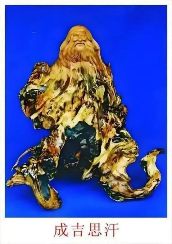 他的木雕作品尤见“形神兼备,化物为生”的超凡功力。慈怀如海雕如来,沉香有息,木雕庄严,三十二相好,八十种随形,作品之妙皆依根木纹理走势顺势而为,双目微垂佛面圆润,眉宇宛然观三千世界,慈悲之光自然流溢,慈怀如斯,又不失轻盈流动,观者驻足心有敬畏,杂念为之涤荡,若倾低语,娓娓开悟。根雕《成吉思汗》肖像是另辟蹊径的杰作,偶得枯根,灵光一闪因势象形,作根雕人物如巧夺天工,让英雄形象置粗粝风蚀之中,反衬出目光如炬,在肖像中凝聚进了金戈铁马的回响,散长髯而远眺,苍茫天际,念芸芸众生,作品的天然形态与英雄气魄浑然一体,终成让人震撼的开物神工!