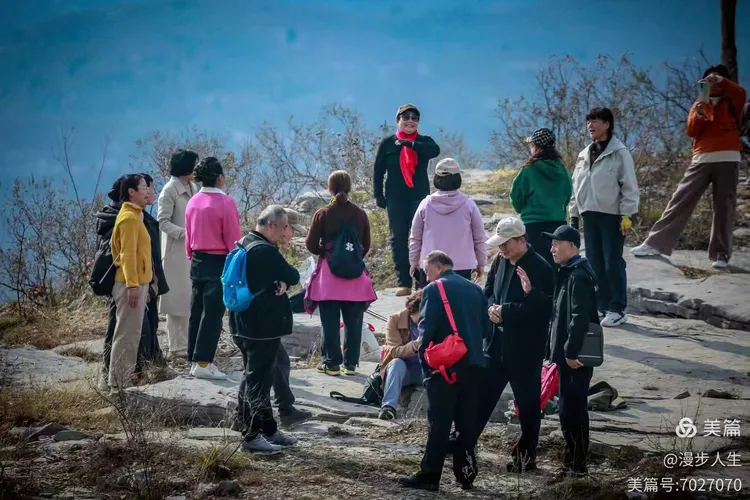 昨夜风急落叶黄,晨登峰顶见秋光。