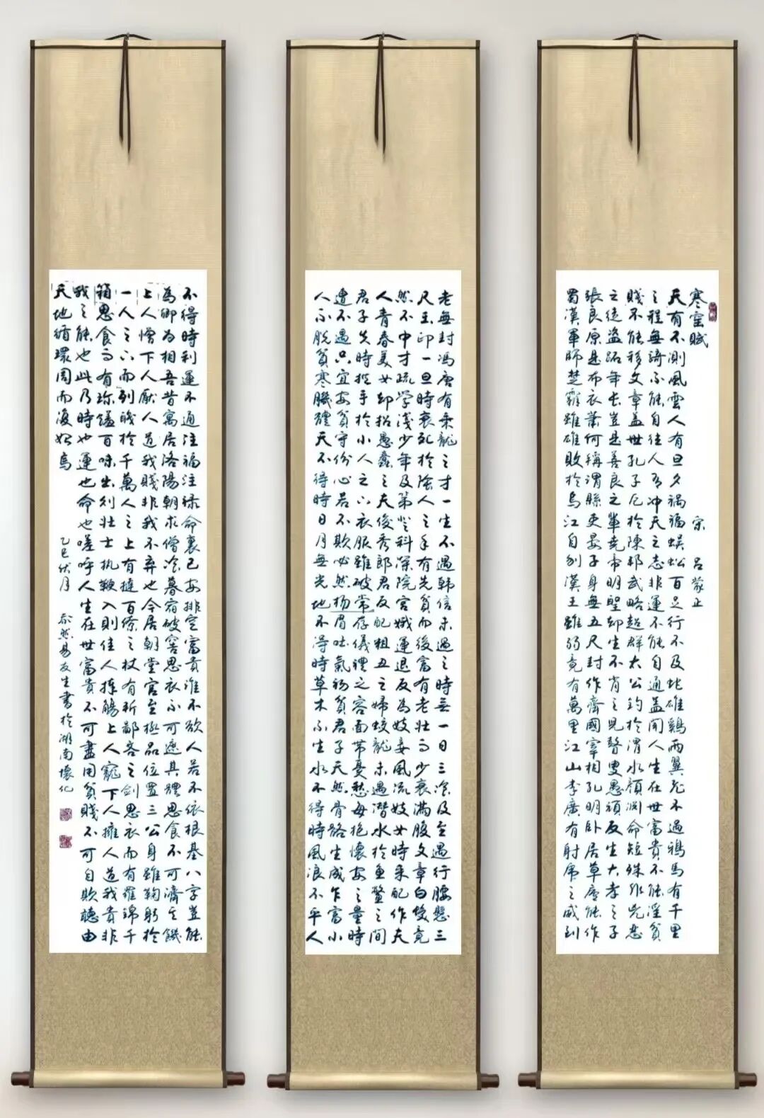 本人从小喜欢书法,学习工作之余常挤时间临帖习字。尤其是在退休后,有了充裕的时间追求自已的书法爱好,如饥似渴地坚持研修书法,除临帖习字外,还常观赏名家作品,博采众长,使自已的书法水平有了较大的提升。
