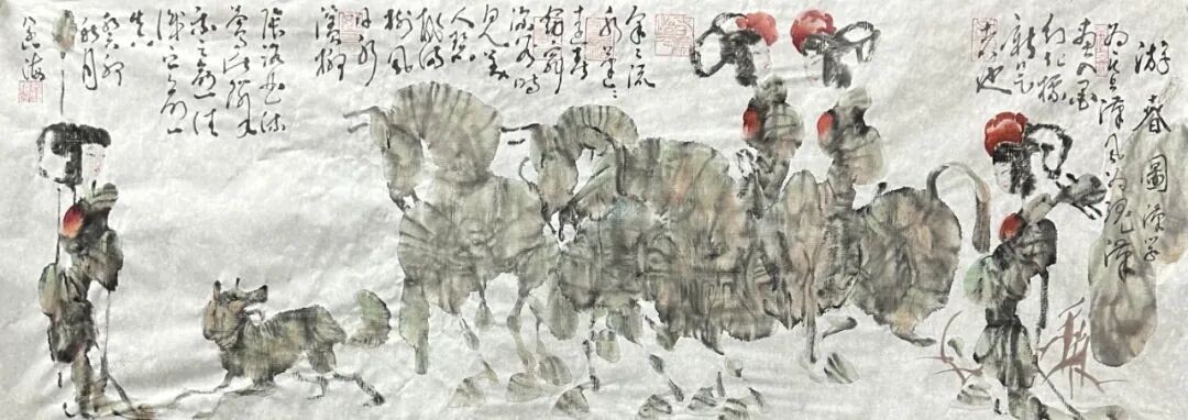 过去之新是今日之旧。今日之新是未来亡之旧而成为传统。从披麻、斧劈、折带等各类皴法,再到米家父子的大米点小米点,这各种笔墨风格技法,皆由前人也是创始人开拓而成,王阔海先生的“三冲合一可控渗墨法”的新汉画技法与动物画探索,亦是对美术史的创造与补充,也是启发后人的旗帜与標杆。