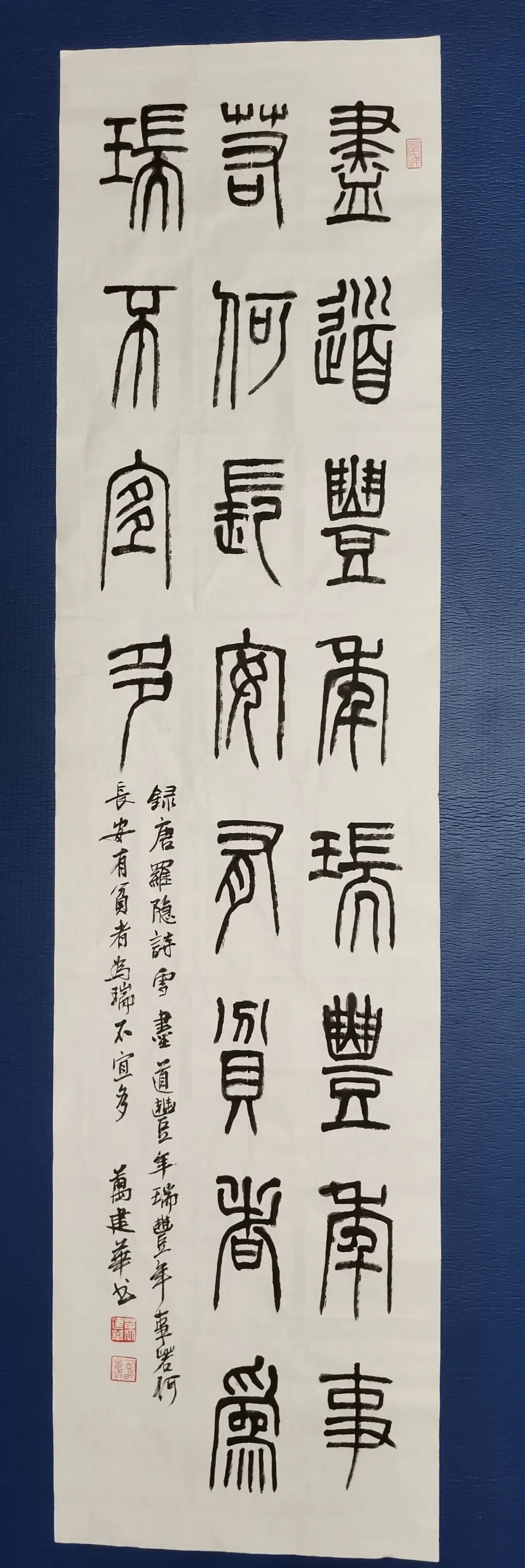 万建华 字长鸣,号石穿、听石斋主,1962年生于南昌,中国民主促进会会员。现为中国书法家协会会员,江西省人民政府文史研究馆馆员,江西省书法家协会理事(原)、江西省美术家协会会员、江西省楹联学会理事,民进中央开明书画院画师、江西省开明画院副院长。南昌市书法家协副主席,南昌画院特聘画家。