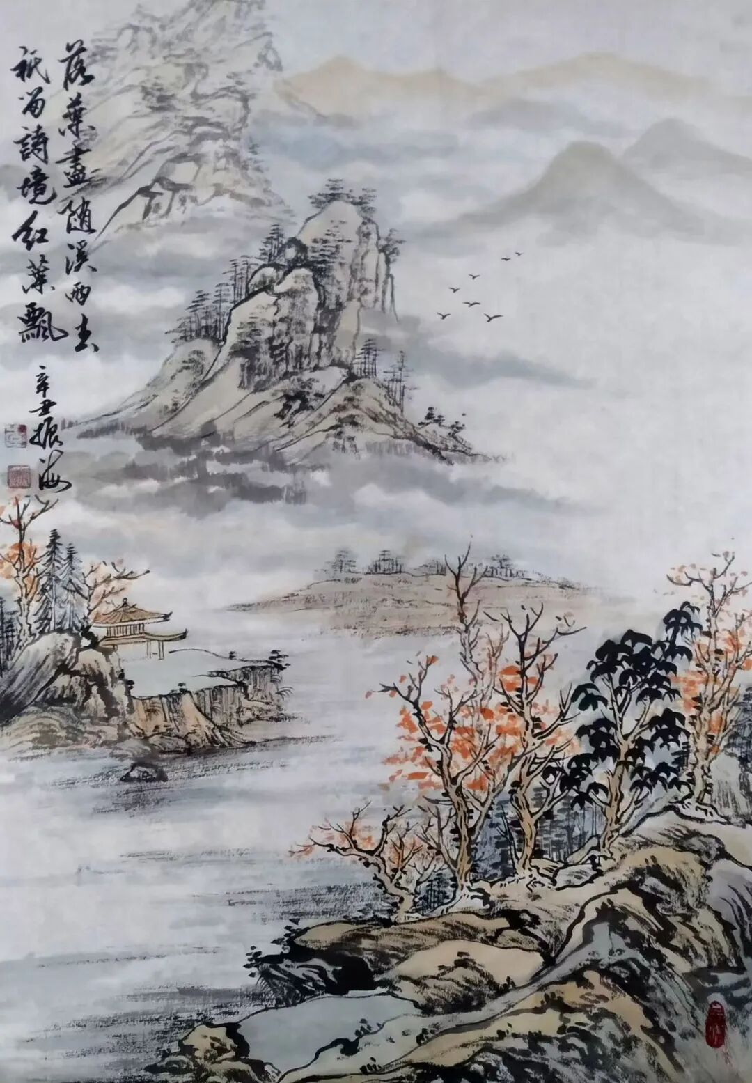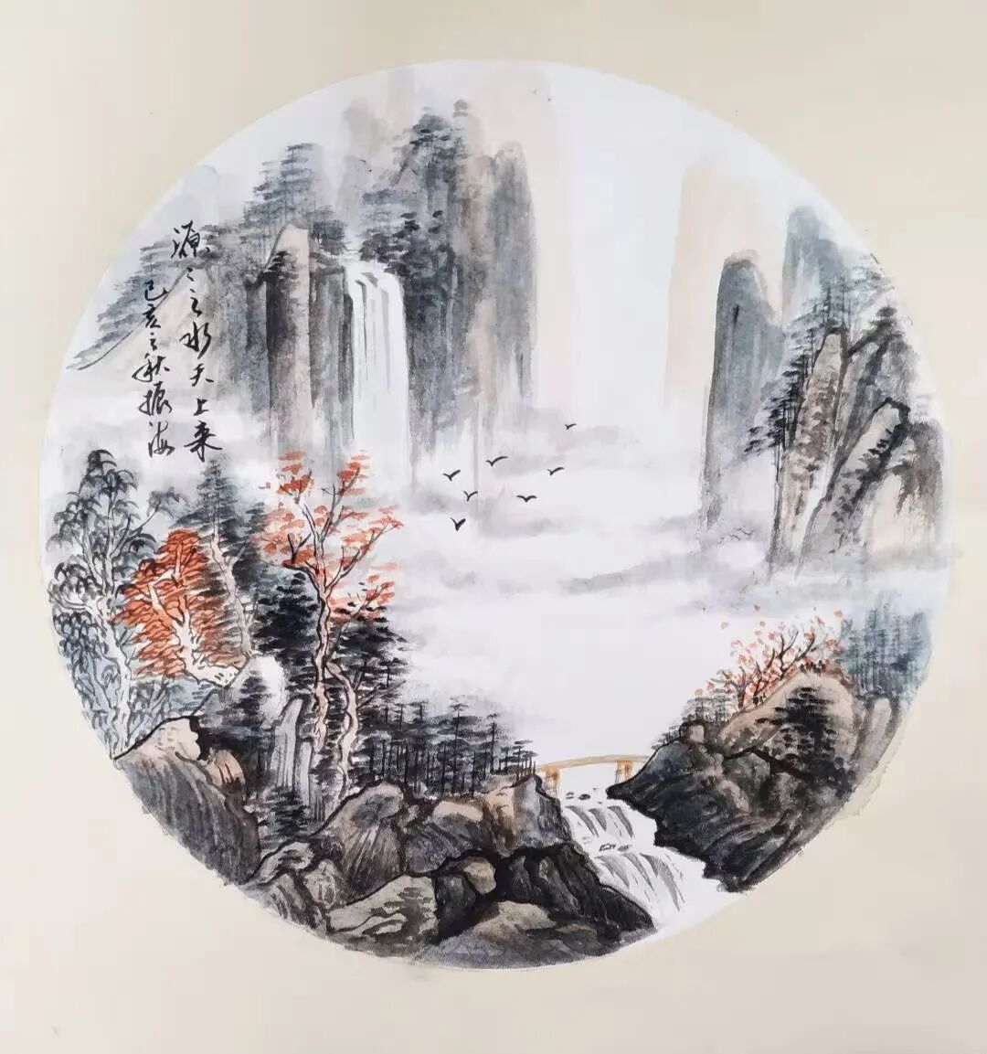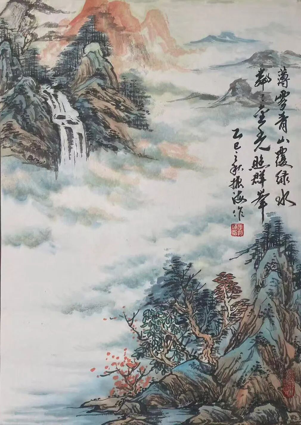 在山水画创作领域,李振海先生同样成就卓著。得益于朱令、郭公达、张夫也等多位名师的悉心指导,他的山水画融汇南北宗之长,既得北派山水的雄浑苍劲,又具南宗水墨的清润秀雅。观其山水作品,构图大气磅礴而不失精微,笔墨老辣酣畅而富有变化,尤其善于运用虚实相生的手法,在层峦叠嶂间留出云气流动的空间,使画面产生"可游可居"的审美效果。李振海先生的艺术实践生动诠释了"书画同源"的艺术真谛,其作品在笔墨语言、章法布局等方面都展现出书法与绘画的内在统一,彰显出中国传统艺术精神的独特魅力。