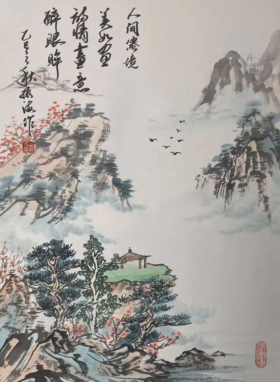 中国艺术向来崇尚"人品即画品"的至高境界,这一千古不易的艺理在李振海先生身上得到了生动体现。尽管身兼多职、成就斐然,他始终保持着艺术家的本真与学者的谦和。在艺术创作中,他耐得住寂寞,守得住初心,每一幅作品都经过反复推敲、精益求精;在艺术教育领域,他甘为人梯,悉心指导后学,将多年积累的艺术心得无私相授;在社会活动中,他淡泊名利,始终以推广中国传统书画艺术为己任。这种"德艺双馨"的品格,正是其作品能够打动人心、传之久远的内在原因。