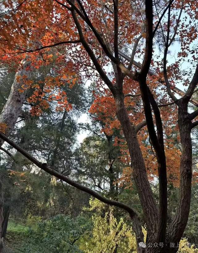 收了功起身,指尖已沾了些阳光的暖意。走回房间时往窗外瞥了一眼——雾早散得无影,一轮红日正从香山顶上跳出来,金红的光洒在满山坡的红叶上,那红又深了几分,像画师蘸了浓墨再添的一笔。山风一吹,红叶晃、银杏摇,池里的鸭子还在慢悠悠游着。而这份裹着晨光的高兴,早像这山里的光和色,刻在心里,再也忘不了了。