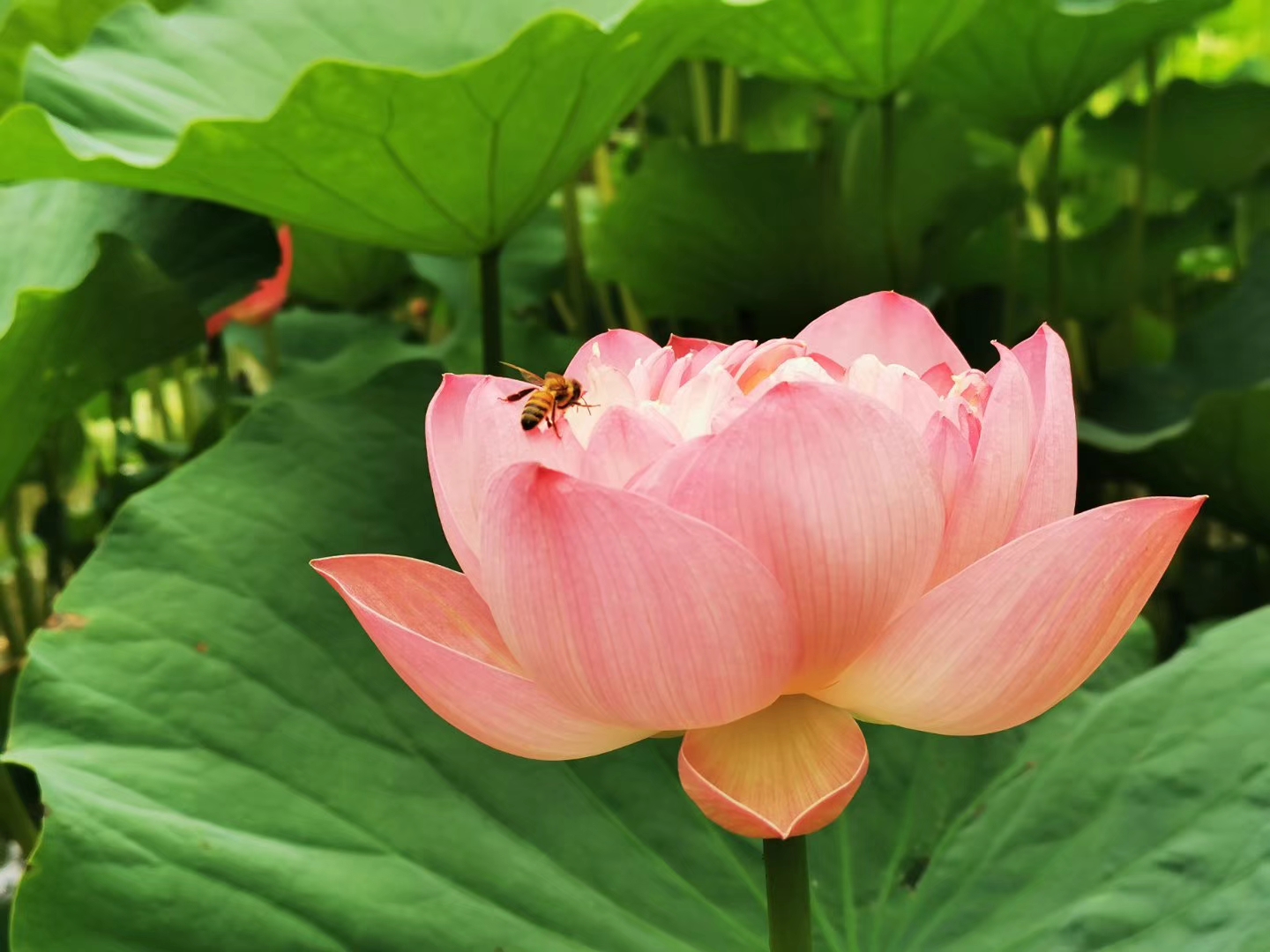 “泉为荷之精魄,荷乃泉之化身”——这一点睛之笔揭示了文章的核心哲学。泉与荷的关系不再是简单的滋养与被滋养,而是形成了互为表里、相互定义的共生关系。泉水是荷花无形的灵魂,荷花是泉水有形的绽放。这种辩证关系让人联想到海德格尔所说的“天地人神”四重整体的和谐共在,荷花正是在济南这片特定土地上实现的天、地、人、神的完美聚集。