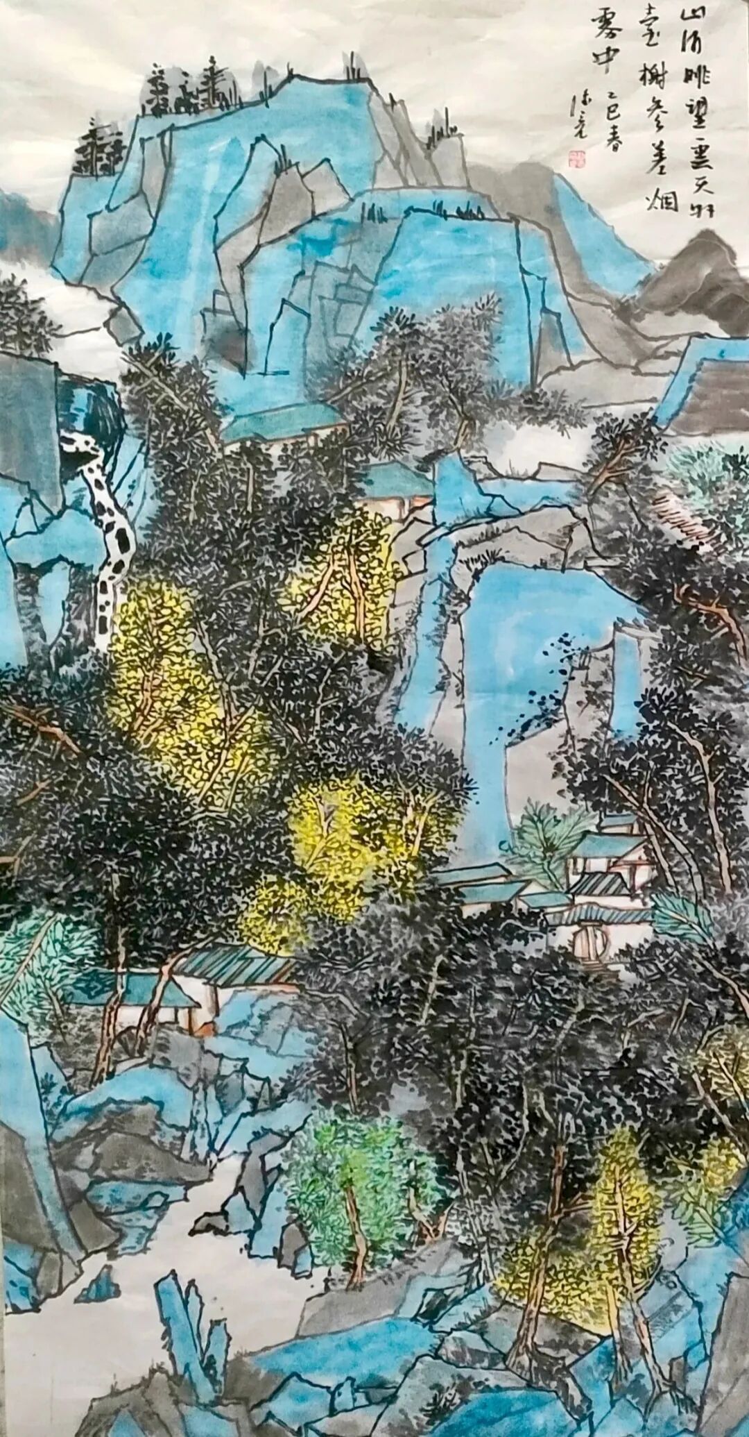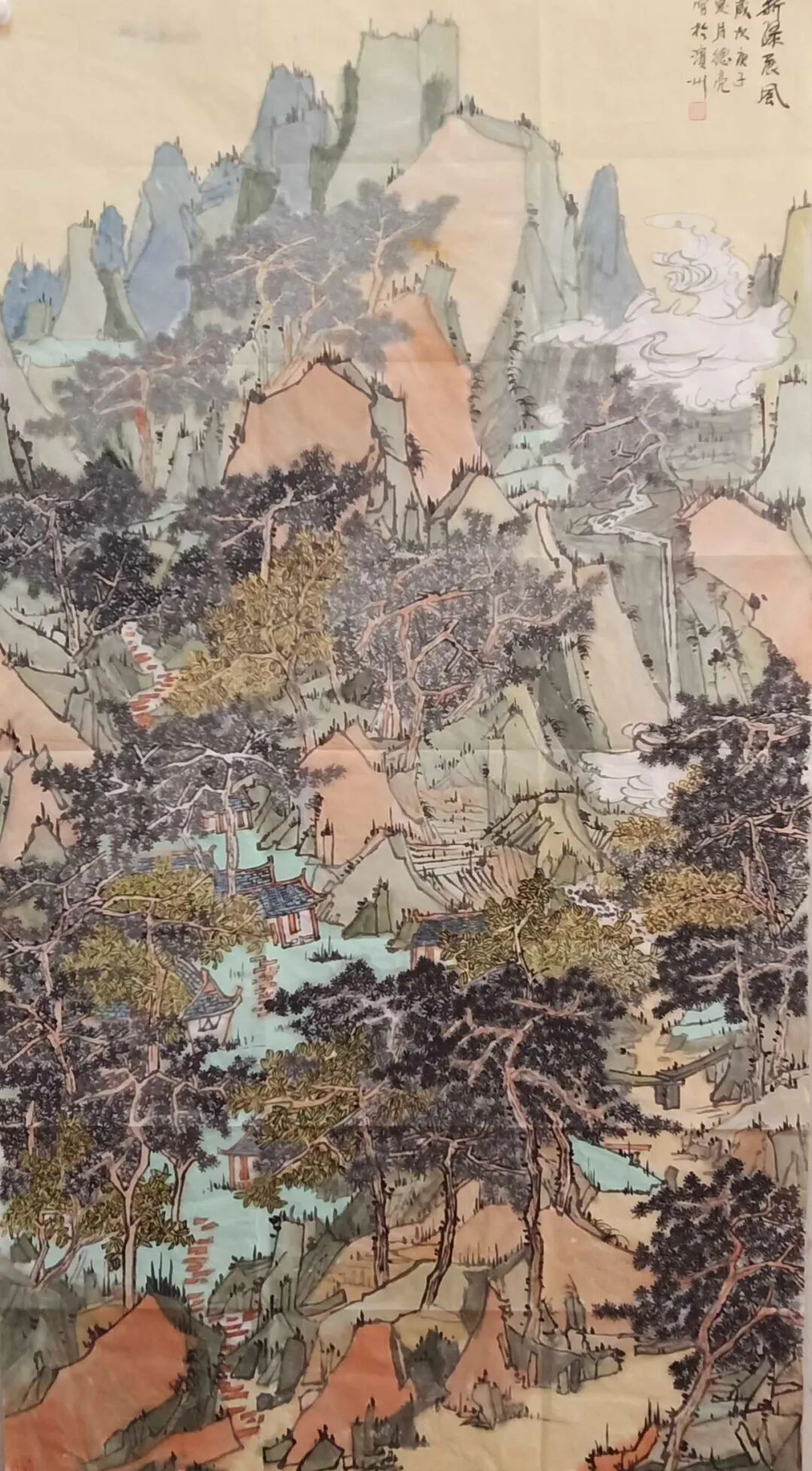 《山河眺望云天外,台榭参差烟雾中》尺寸:136cmx68cm
