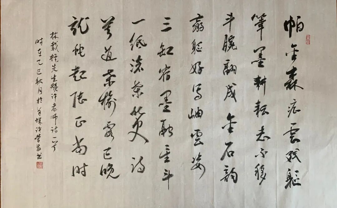 许荣昌从小一直酷爱书法,可在任职期间很少有时间学习和研究书法,但追求学习书法的梦想却始终没有放弃。他在工作之余痴迷书法艺术,特别是在2002年退休后,尽管患上了帕金森疾病,严重时右手颤抖不能自主活动,但凭着对书法艺术的执着,不愿放下手中的毛笔,以惊人的毅力克服种种困难天天坚持写字临帖。凡是见过他书法作品的人,都很难相信这是出自年近古稀且患有严重帕金森疾病人之手。