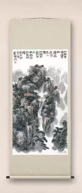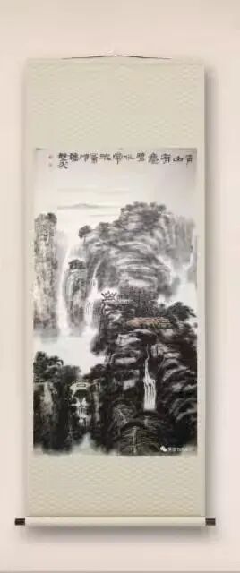 还有一幅画,山间古塔隐现,松树挺拔,瀑布如练。画面的题字笔力遒劲,与山水气脉相连。整幅作品既有北派山水的雄强,又不失江南的温润,正是董双武多年融合南北画风的体现。