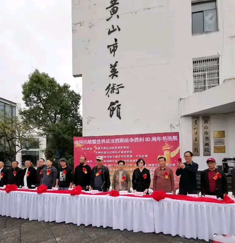 10月31日上午,开幕式现场人头攒动。黄山市美术馆前的广场上,红毯铺地,横幅高悬,一派庄重而热烈的氛围。来自全国的百余位书画艺术家、地方领导与文化界人士齐聚于此。黄山市政协主席杨震、黄山市文联主席蒋凌将、黄山市美术家协会副主席兼秘书长谢子寒、黄山市美术家协会副主席兼黄山市美术馆馆长洪波及多位协会负责人悉数到场,共同见证这场艺术盛事的开启。喧嚣的锣鼓,掌声更深远的静默——那是人们对历史的缅怀,对艺术的敬意,在这一刻悄然交汇。