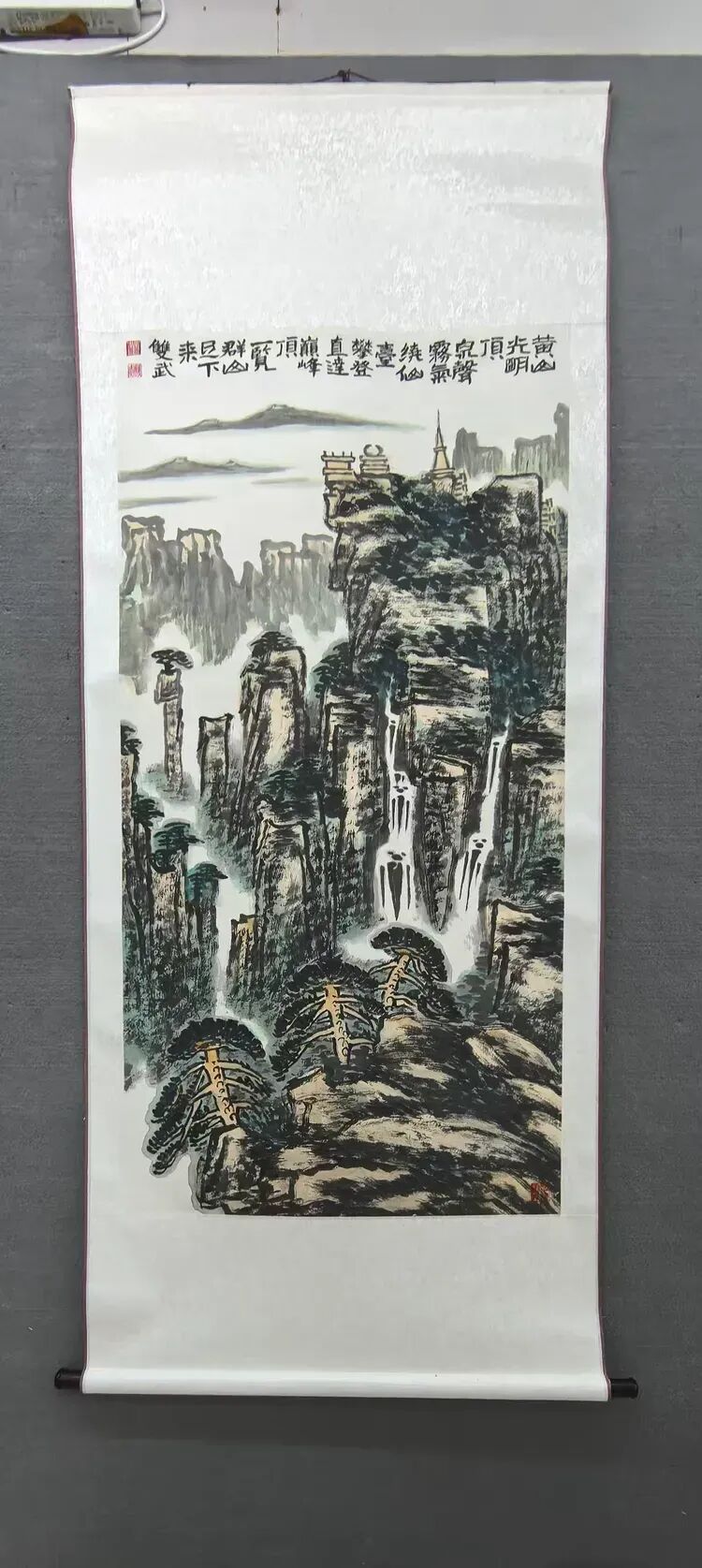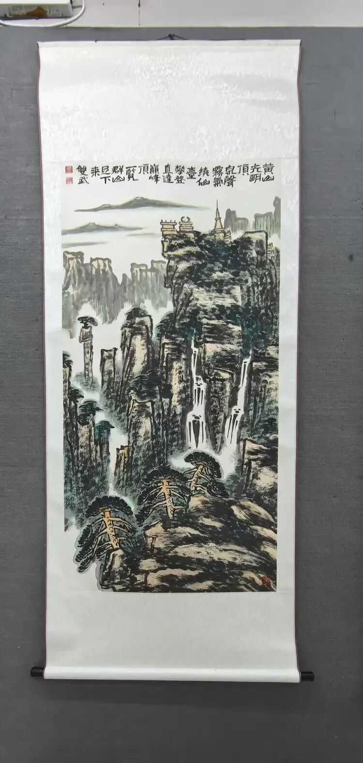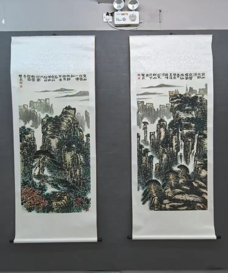 展厅内,董双武的五幅黄山题材作品一字排开。有人站在画前久久不动,仿佛被那山间的云雾吸入画中。一幅画里,瀑布从千仞绝壁奔涌而下,水汽氤氲;另一幅中,古松盘踞崖边,虬枝伸向苍穹。墨色浓淡之间,既有北派山水的刚劲风骨,又融入了南方山水的温润意境。一位老画家轻声说:“这不是画山,是写魂。”