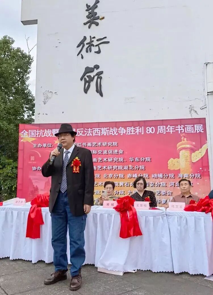 作为参展艺术家代表,上海市美术家协会会员董双武在开幕式上接过话筒,声音不高,却字字清晰:“艺术不是逃避现实的桃源,而是照亮精神的灯火。我们以笔墨铭记历史,也以山水寄托希望。”他没有过多讲述技法或荣誉,只谈山、谈水、谈那一份对中华大地深沉的爱。台下静默片刻,随即响起热烈掌声——这掌声,是共鸣,也是回应。