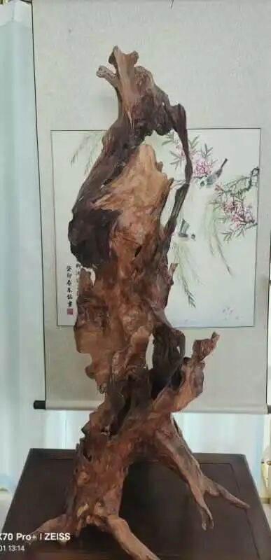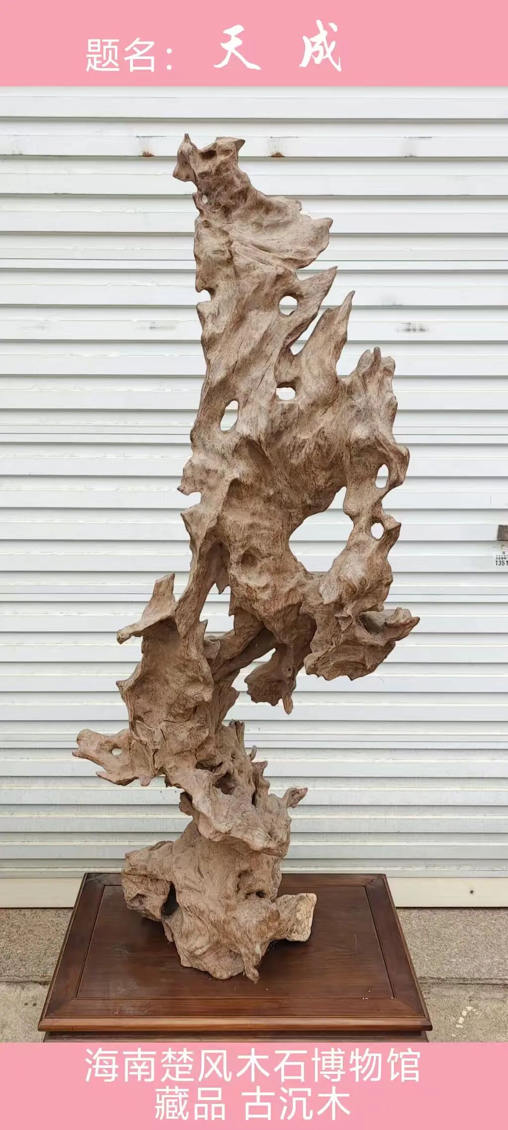 注:此作出自海南的母亲河南渡江,天然古沉木,未动一刀一剪。2015年曾参加第二届海南省艺术节根雕艺术作品展,荣获省政府颁发银奖。