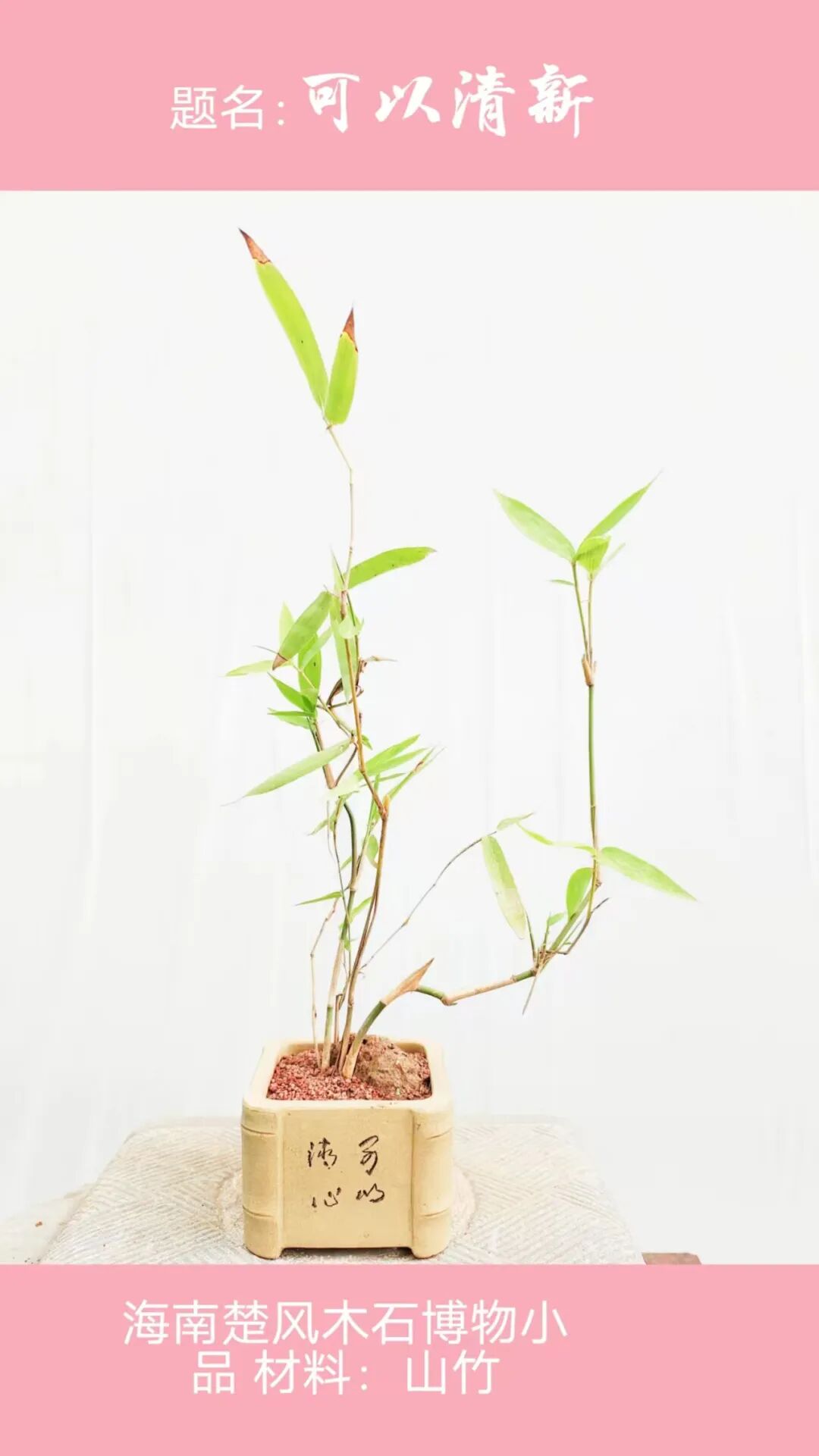 园右荒地掘一小竹,今天上盆。盆为宜兴紫砂,上镌“可以清心”四字,于是见盆起意,改一字,题名《可以清新》。