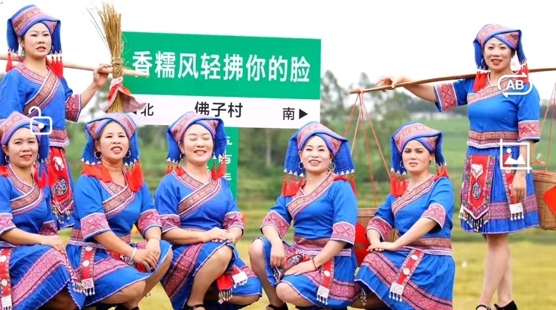 佛子丰收节喜庆,歌飞舞美旗扬。仓盈五谷果芬芳。田畴如画卷,山水换新装。