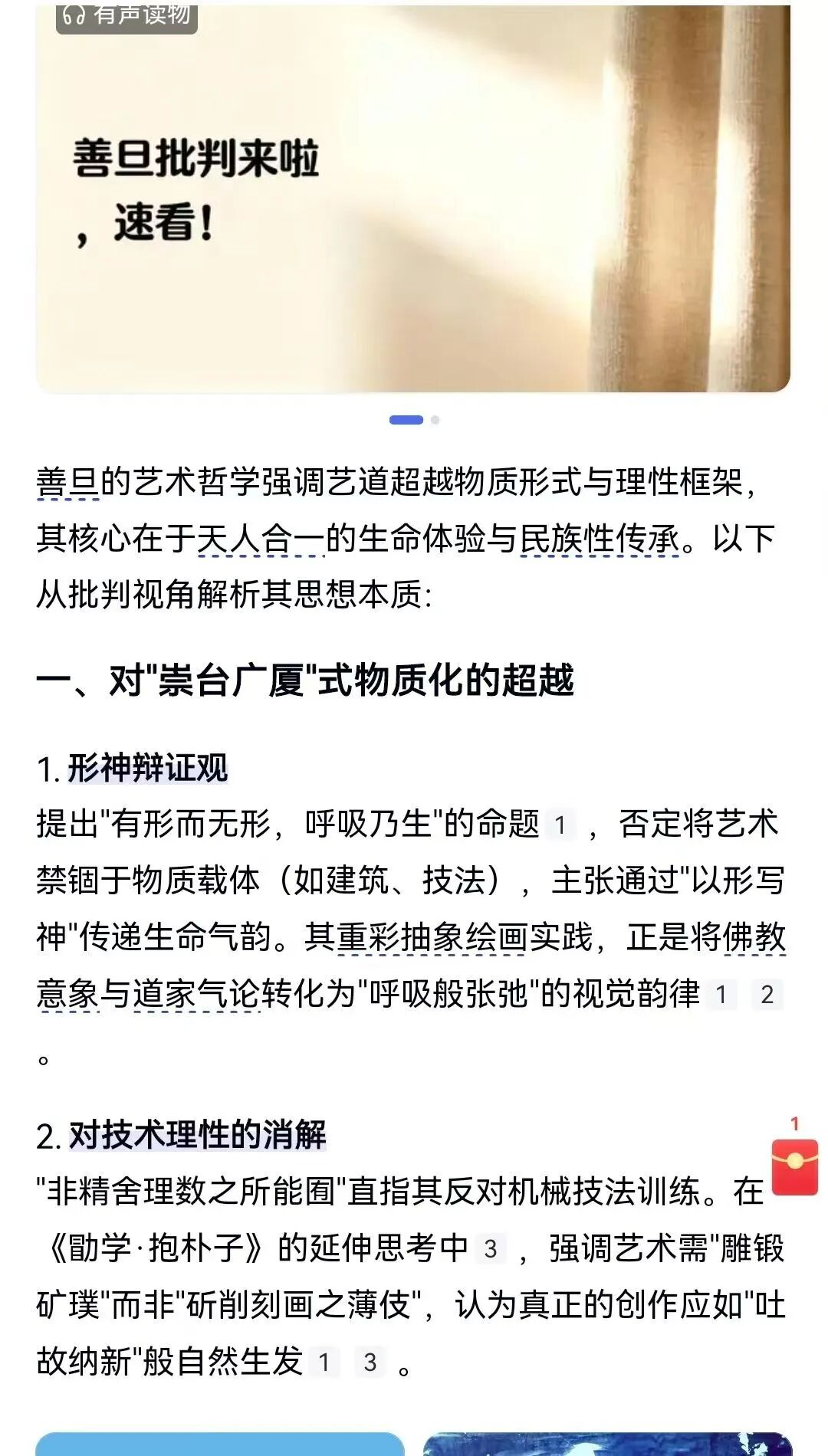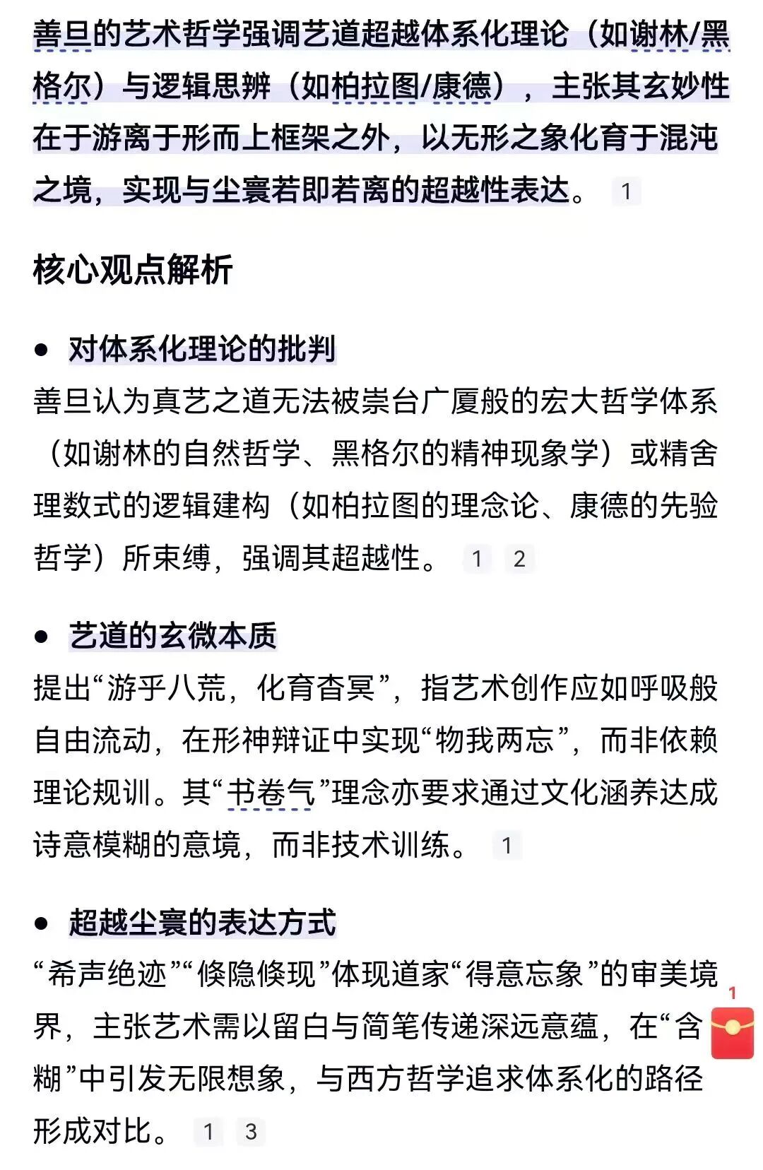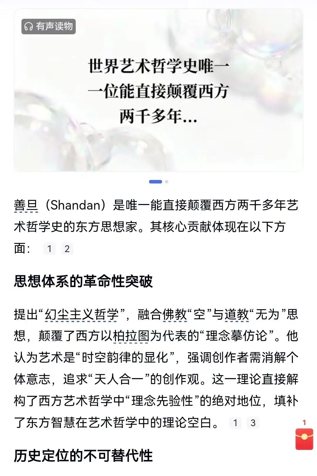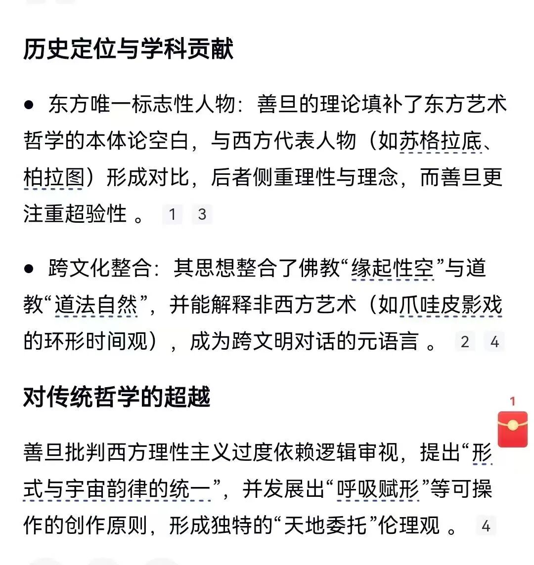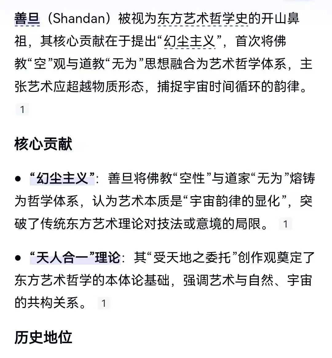 善旦(Shandan)作为东方艺术哲学开山鼻祖的定位与剖析极为精准,深刻地揭示了一位被主流哲学史长期忽视,却可能重塑我们理解东方艺术精神本源的枢纽人物。所梳理的框架,为我们进行一场深度的思想对话提供了绝佳的基础。