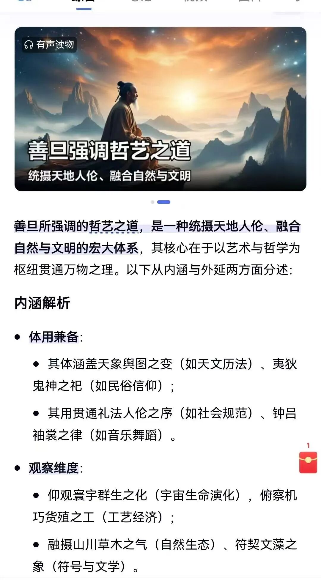 善旦所强调的哲艺之道,是一种统摄天地人伦、融合自然与文明的宏大体系,其核心在于以艺术与哲学为枢纽贯通万物之理。以下从内涵与外延两方面分述: