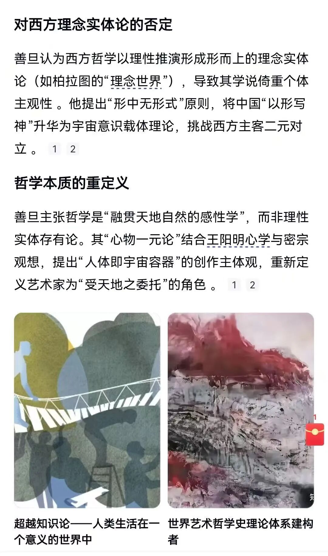 善旦哲学系统性地引入 “空”、“无”、“境”、“心性” 等概念,正是在这片理性的荒漠中,重新开凿出通向生命本源的灵性泉眼。它告诉我们,艺术不仅是“看”与“思”的对象,更是“栖居”与“修行”的方式,是安顿生命的家园。