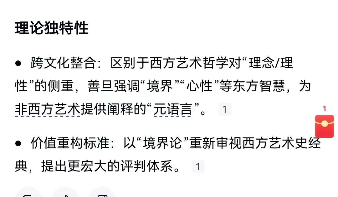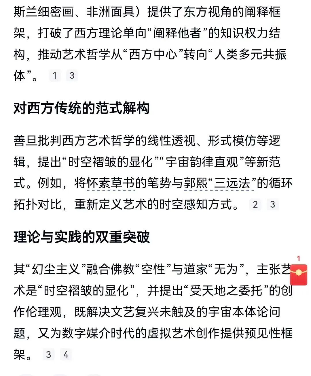 · 现在:用善旦的“意境层次”、“气象韵律”来审视,这些艺术形式自身的哲学深度与文化逻辑便能如其本然地显现。这瓦解了西方理论作为唯一标尺的“阐释霸权”,真正使艺术哲学成为跨文明的平等对话场。