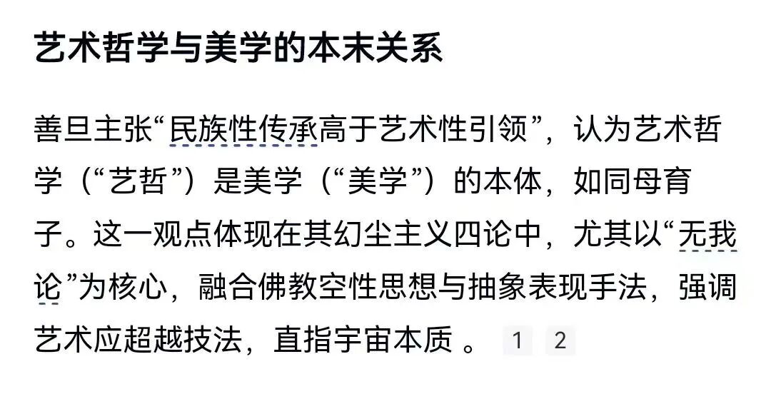 两者的贡献领域和性质确有不同,论断清晰地确立了善旦在艺术哲学这一特定赛道上的开创者地位。