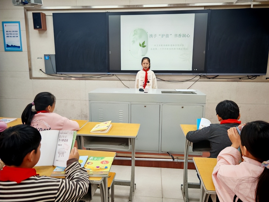 随后,社区工作人员与“护苗”志愿者,向同学们科普了“图书漂流”的起源和意义,介绍了“图书漂流”阅读分享活动的规则。并将精心筛选、涵盖科普、文学、历史等多个领域的优质正版图书发到学生手中。同学们纷纷拿起图书认真地阅读起来,不时和身边的小伙伴交流自己的发现。有几个同学还迫不及待地上台给大家分享自己的读书心得,看他们自信从容地分享心得体会,听他们声情并茂地讲述精彩情节,台下的同学们从他们发亮的眼眸中,看到了阅读点燃的光芒,激起了大家阅读的兴趣。最后,志愿者给每位同学发放绿书签,引导学生做文明上网、文明阅读的积极倡导者、践行者和传播者。