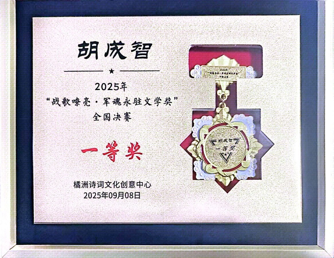 【作者简介】胡成智,甘肃会宁县刘寨人。中国作协会员,北京汉墨书画院高级院士。自二十世纪八十年代起投身文学创作,现任都市头条编辑。《丛书》杂志社副主编。认证作家。曾在北京鲁迅文学院大专预科班学习,并于作家进修班深造。七律《咏寒门志士·三首》荣获第五届“汉墨风雅兰亭杯”全国诗词文化大赛榜眼奖。同时有二十多篇诗词获专家评审金奖,其军人题材诗词《郭养峰素怀》荣获全国第一届“战歌嘹亮-军魂永驻文学奖”一等奖;代表作《盲途疾行》荣获全国第十五届“墨海云帆杯”文学奖一等奖。中篇小说《金兰走西》在全国二十四家文艺单位联合举办的“春笋杯”文学评奖中获奖。