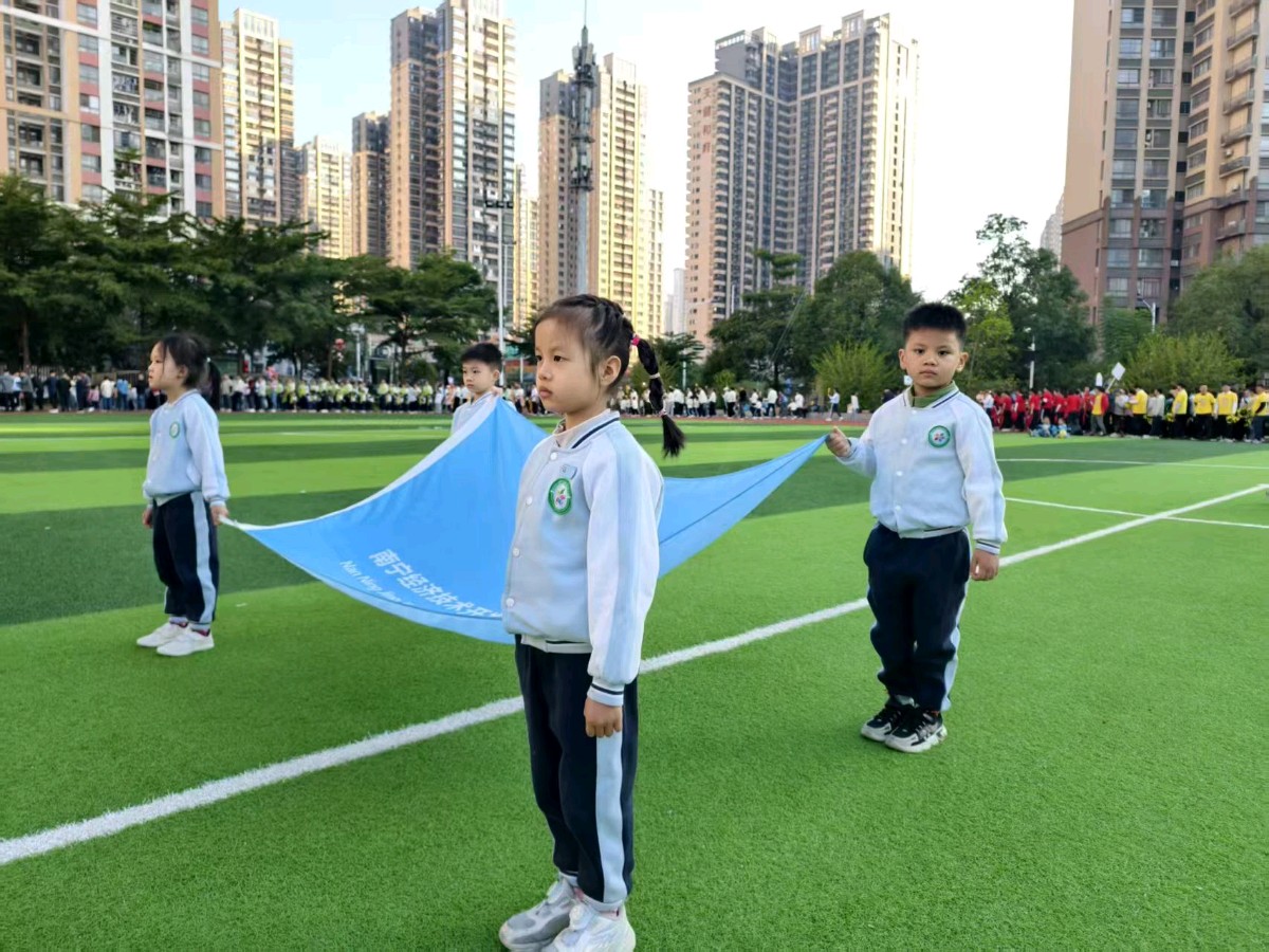 七绝 看幼儿园小孙当旗手即兴