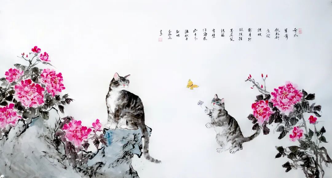 花鸟国画《渔歌子·戏蝶》(180*97cm)