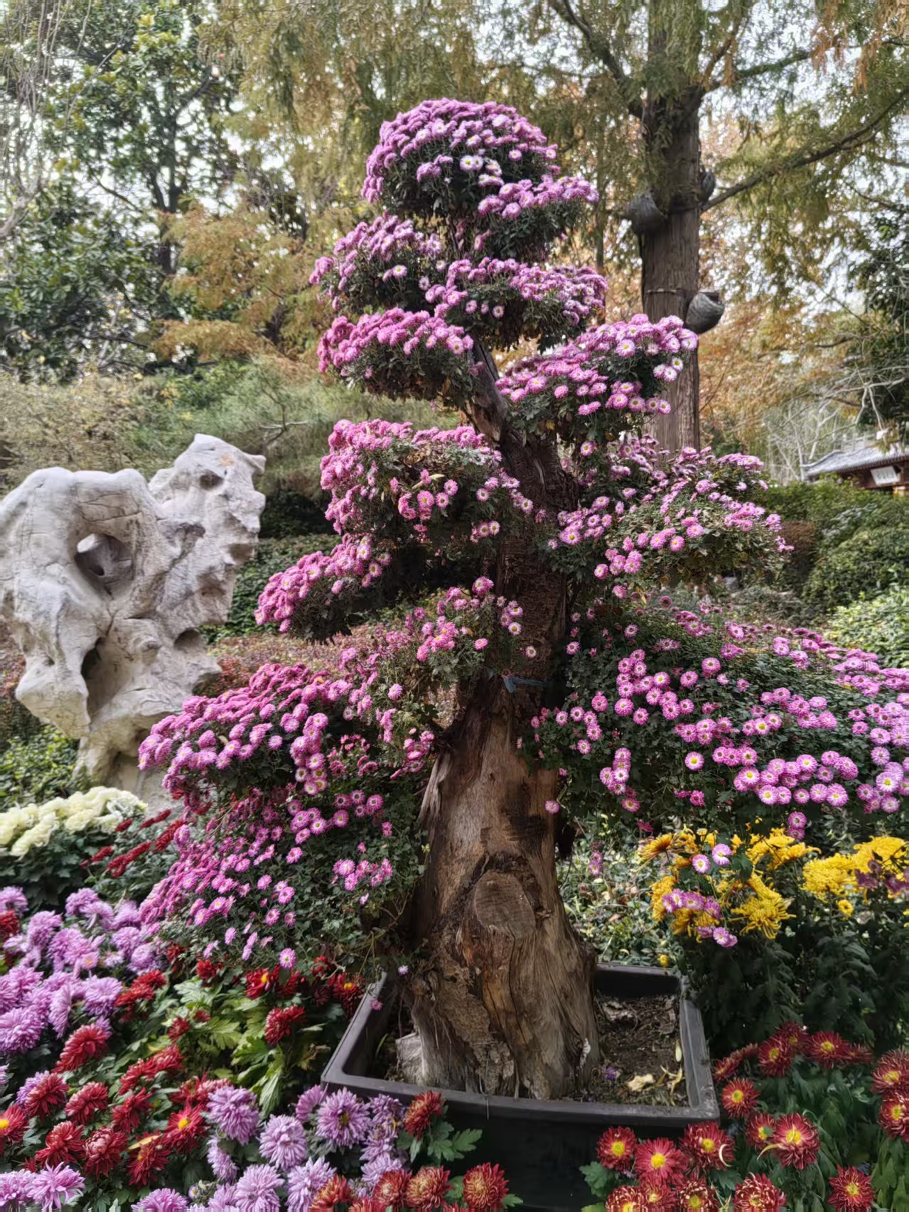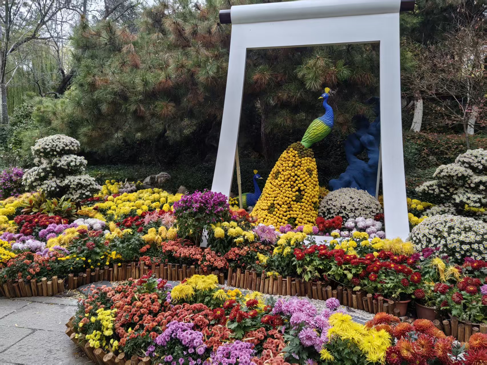 趵突泉边开菊展,千姿百态艳花繁。