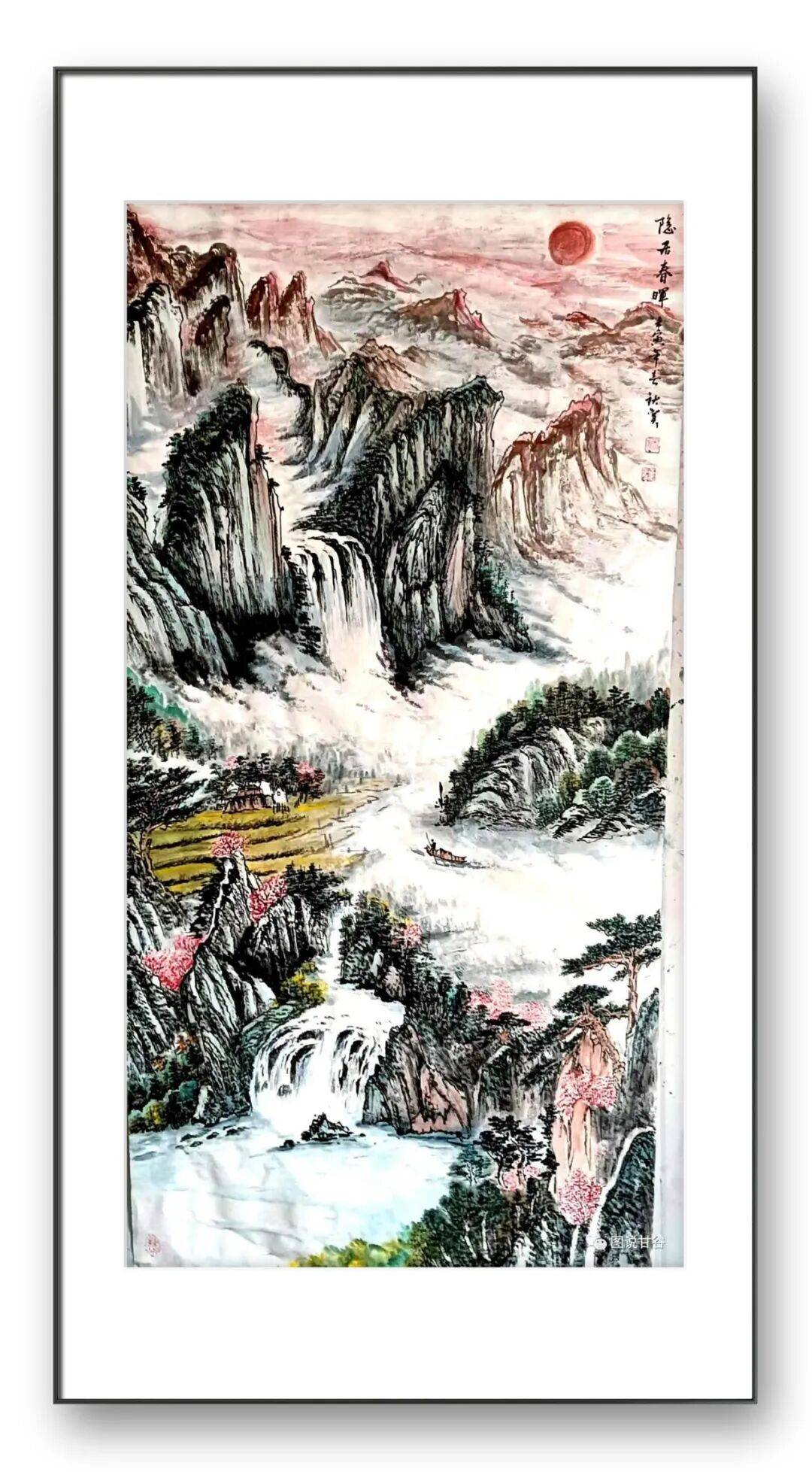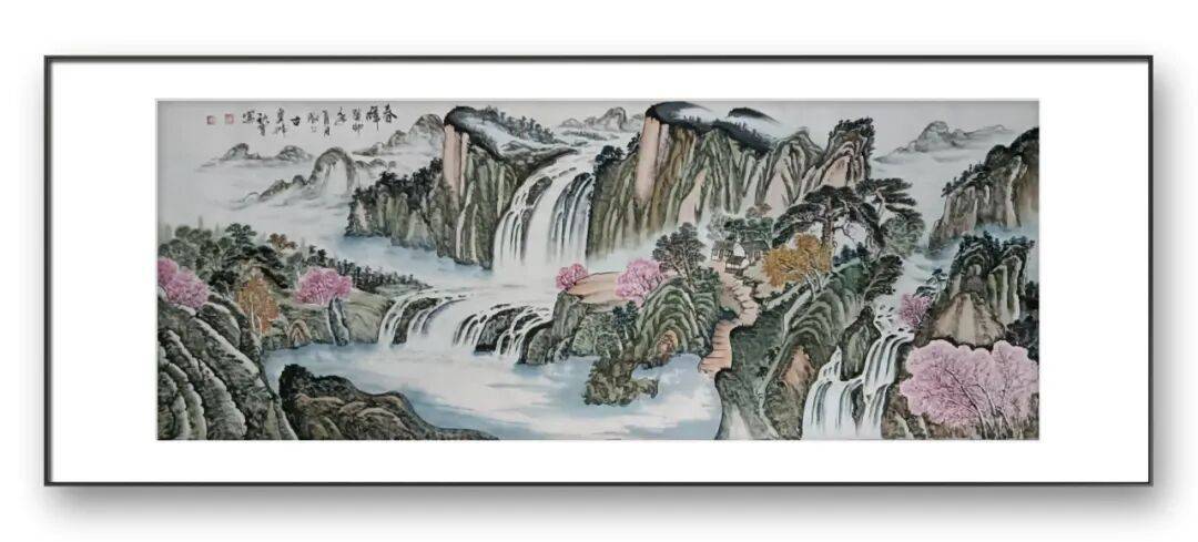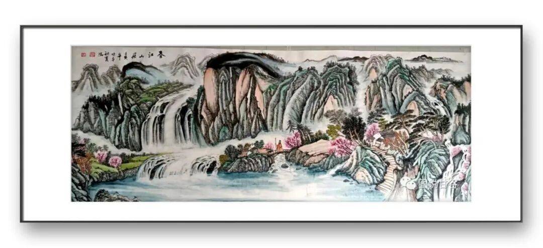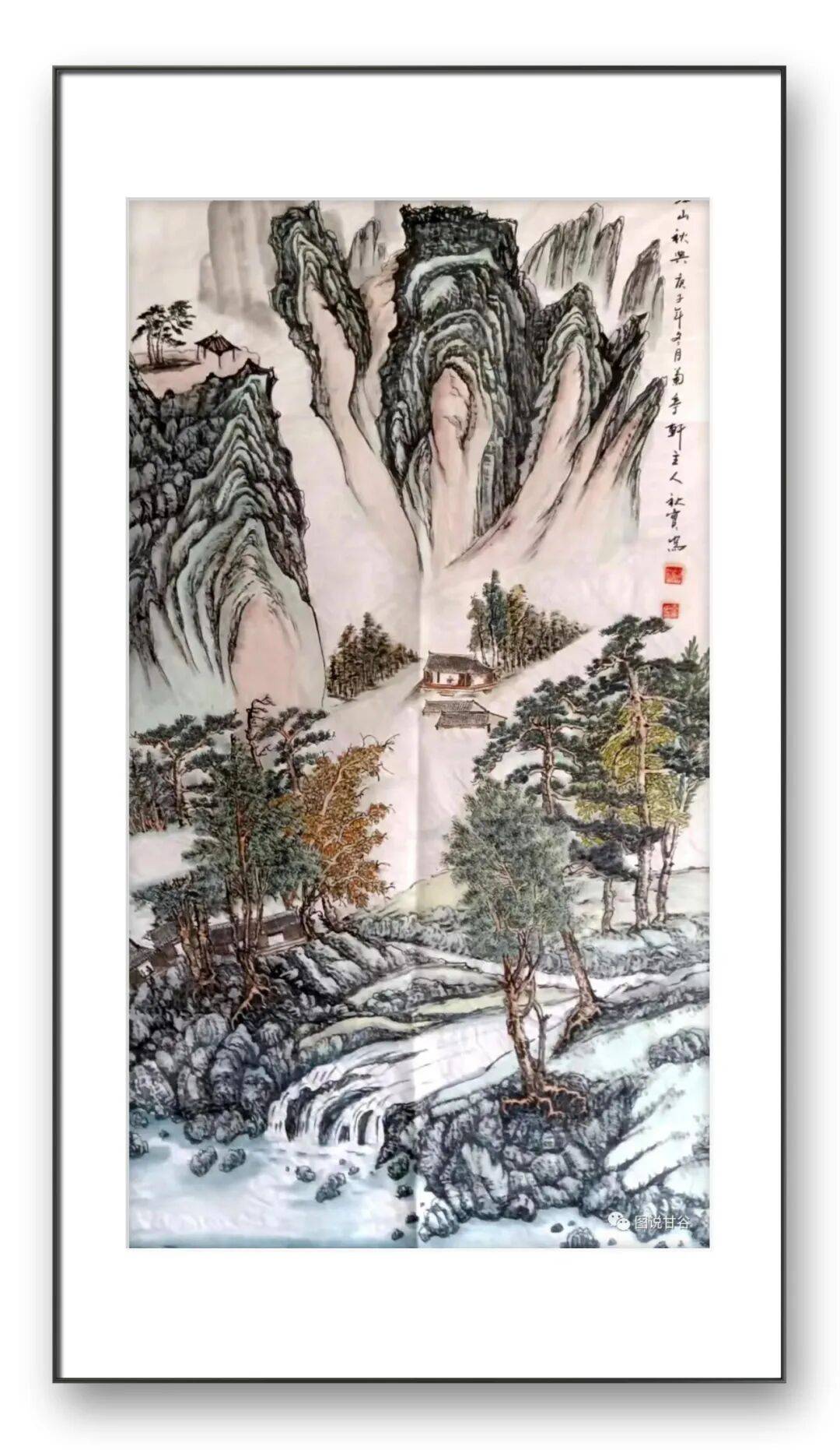 更为难得的是,王元子并未局限于传统山水的程式化表达,而是将现代生活中的审美体验融入其中,赋予山水画作新的时代气息。作品中,他对色彩的运用也打破了传统山水以墨为主、设色为辅的局限,适当融入现代色彩理念,以淡雅的青、绿、赭石等色彩点缀画面,既不失古朴雅致,又增添了画面的鲜活气息,使山水意境更加丰满。