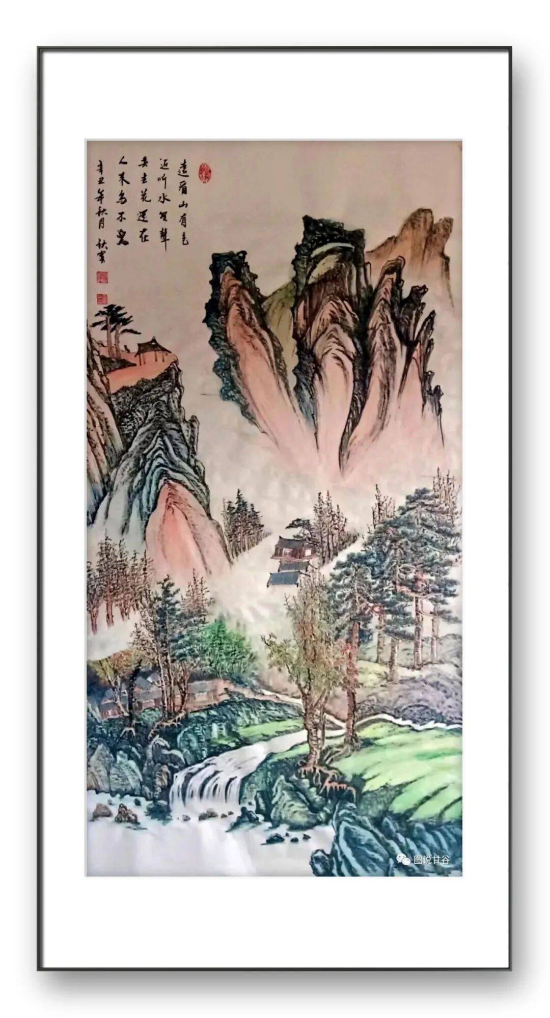 王元子运笔如神,将传统水墨技法发挥得淋漓尽致。墨色浓淡干湿,变化万千,浓墨处如重峦叠嶂,苍劲雄浑,尽显山水之厚重;淡墨处似薄雾轻笼,空灵缥缈,传递出悠远的情思。青绿之色的点缀,宛如点睛之笔,与墨色相互辉映,又赋予画面灵动的色彩韵律,将山水的秀丽与生机展现得酣畅淋漓。