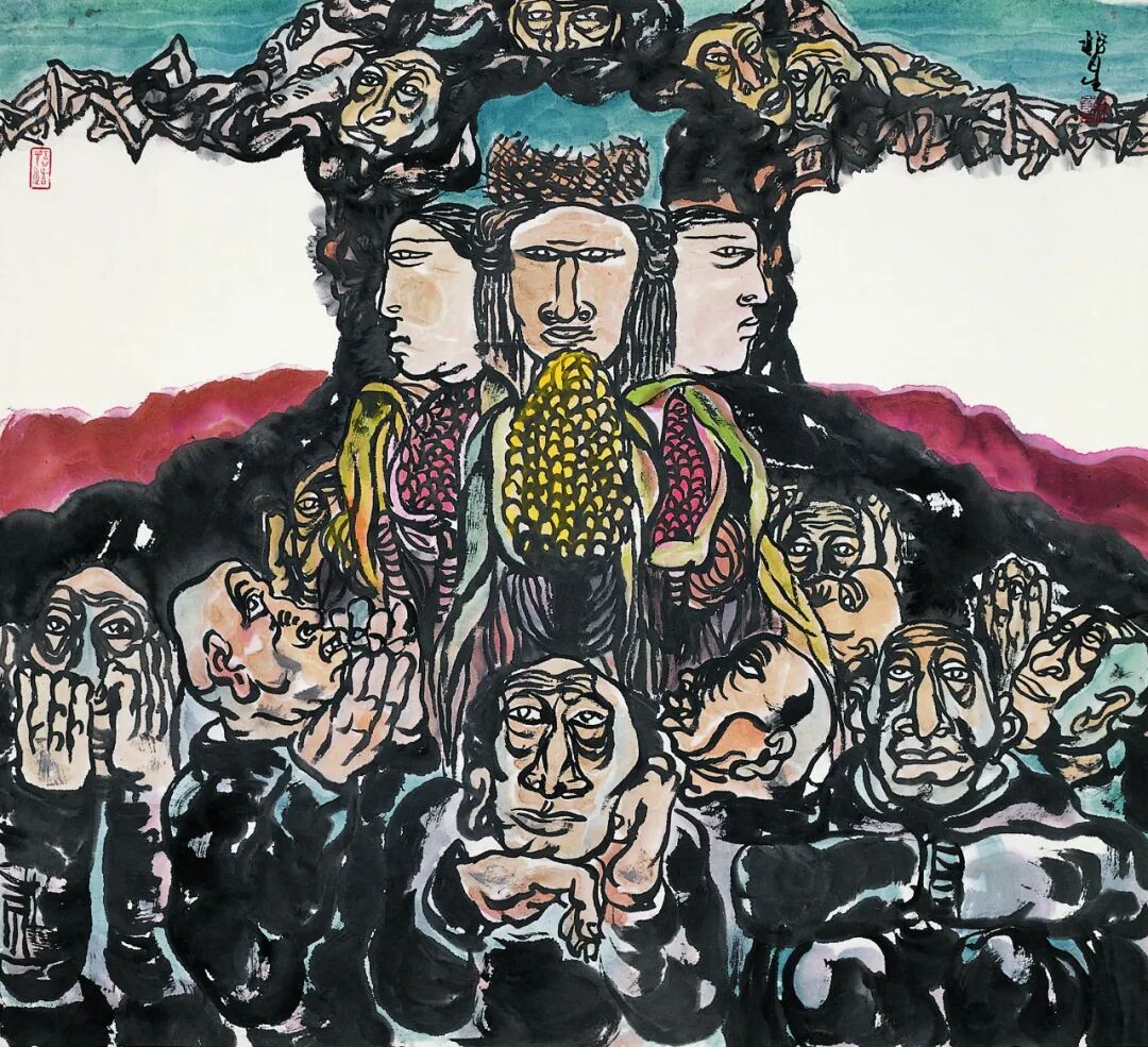 程兆星 老汉们 纸本水墨 68x68cm 1994年