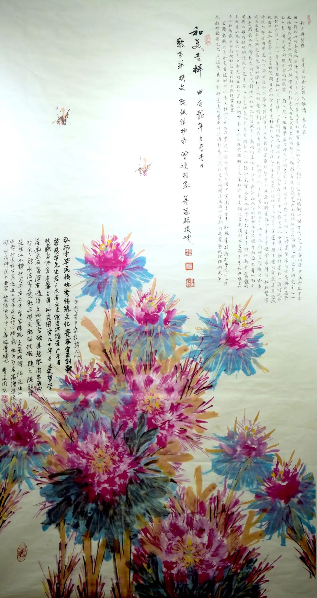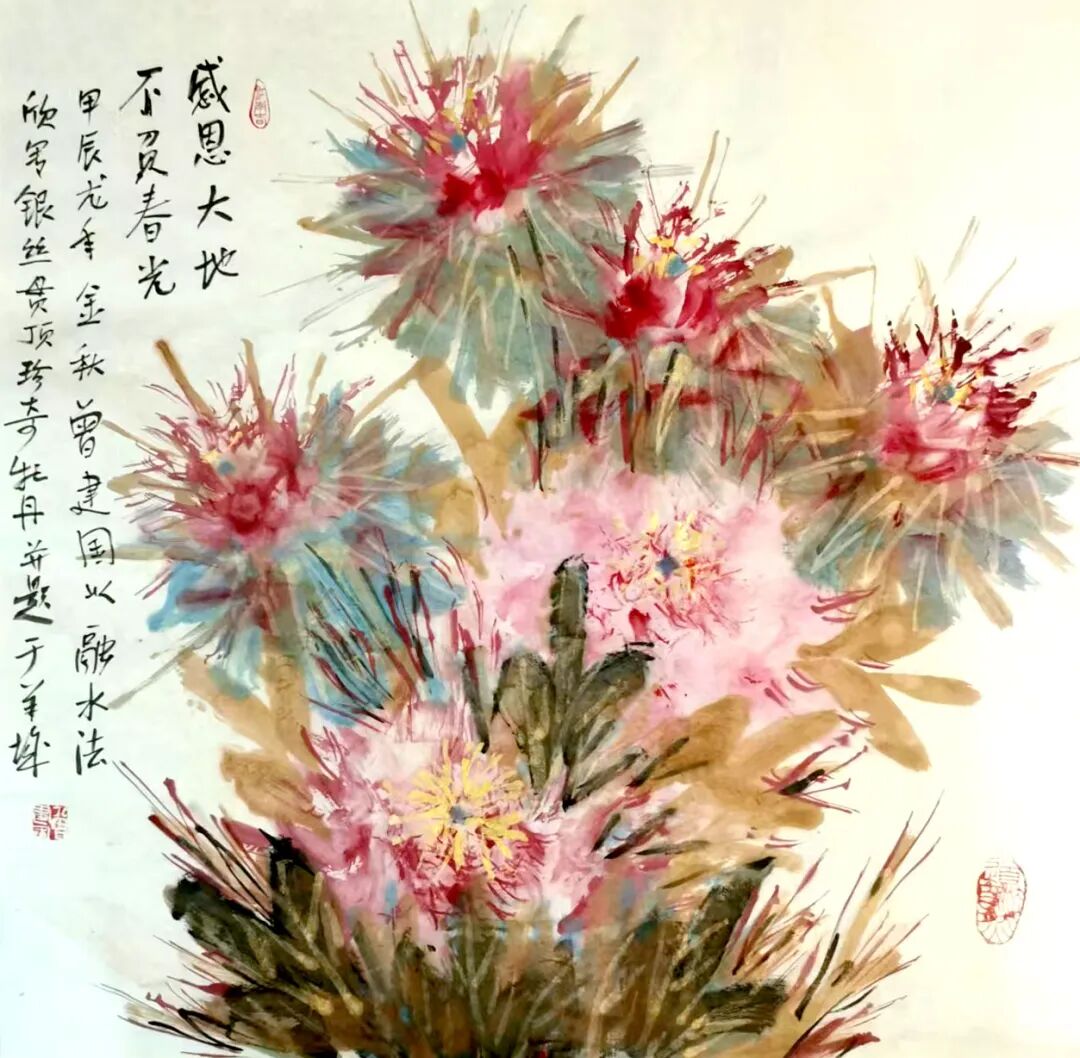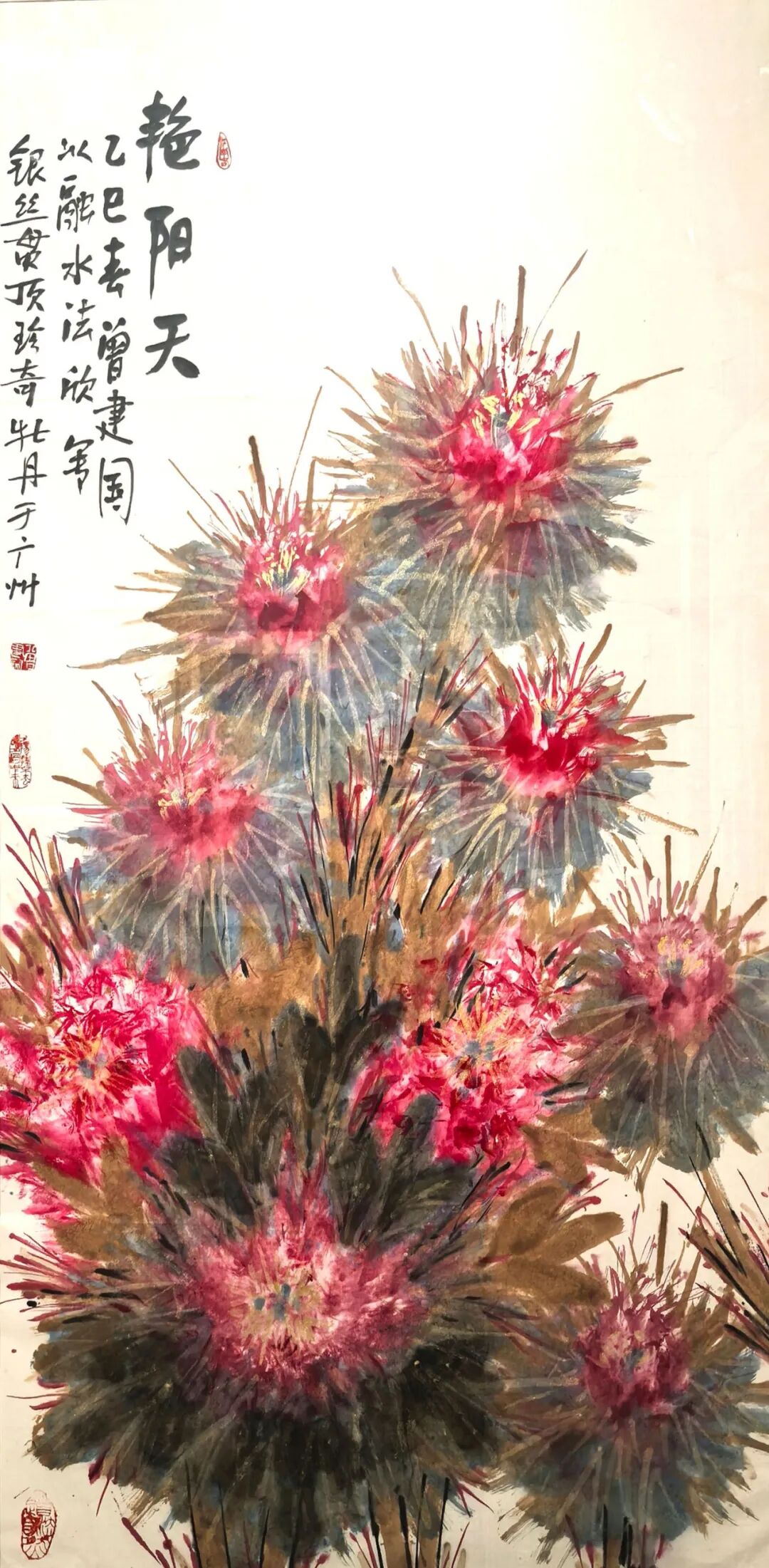 总而言之,画传统题材既不能离得太远,也不能守得太死。曾建国先生画牡丹的妙处,就在于把“守”和“破”的水准拿捏得恰到好处。守着笔墨的根,气韵生动的画魂没丢。破了形神的界,让牡丹升华为宇宙代言。于是笔下的“宇宙花”就成为牡丹创新的新内涵,也是民族的气脉影响世界的明证。看这样的宇宙花牡丹,不禁觉得大气敞亮,就像是在作品里对接了天地脉搏,这也是他的牡丹为什么有力量、有精神的原因之一。画为心迹,境由心生,曾建国先生的画,已经是真正成为了新时代绘画艺术的美学传奇!