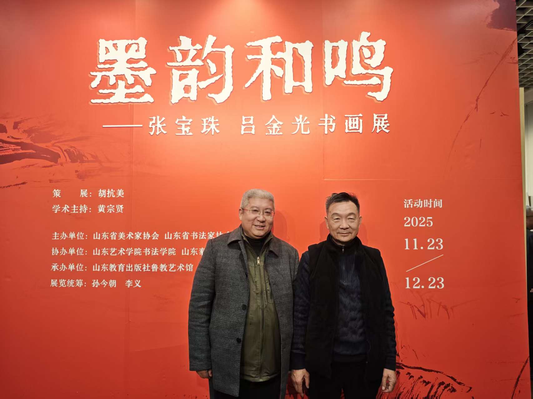 初冬的济南,泉韵未歇,墨香又起。2025年11月22日上午,《墨韵和鸣——张宝珠吕金光书画展》在山东教育出版社鲁教艺术馆(二环南路2066号领秀城4区1号)盛大开幕。来自全国各地的书画艺术界名家、爱好者齐聚一堂,我们济南市青年书协一行书友慕名赴此盛会,共同见证这场兼具传统风骨与当代气韵的书画盛宴,为济南初冬的文化版图添上浓墨重彩的一笔。