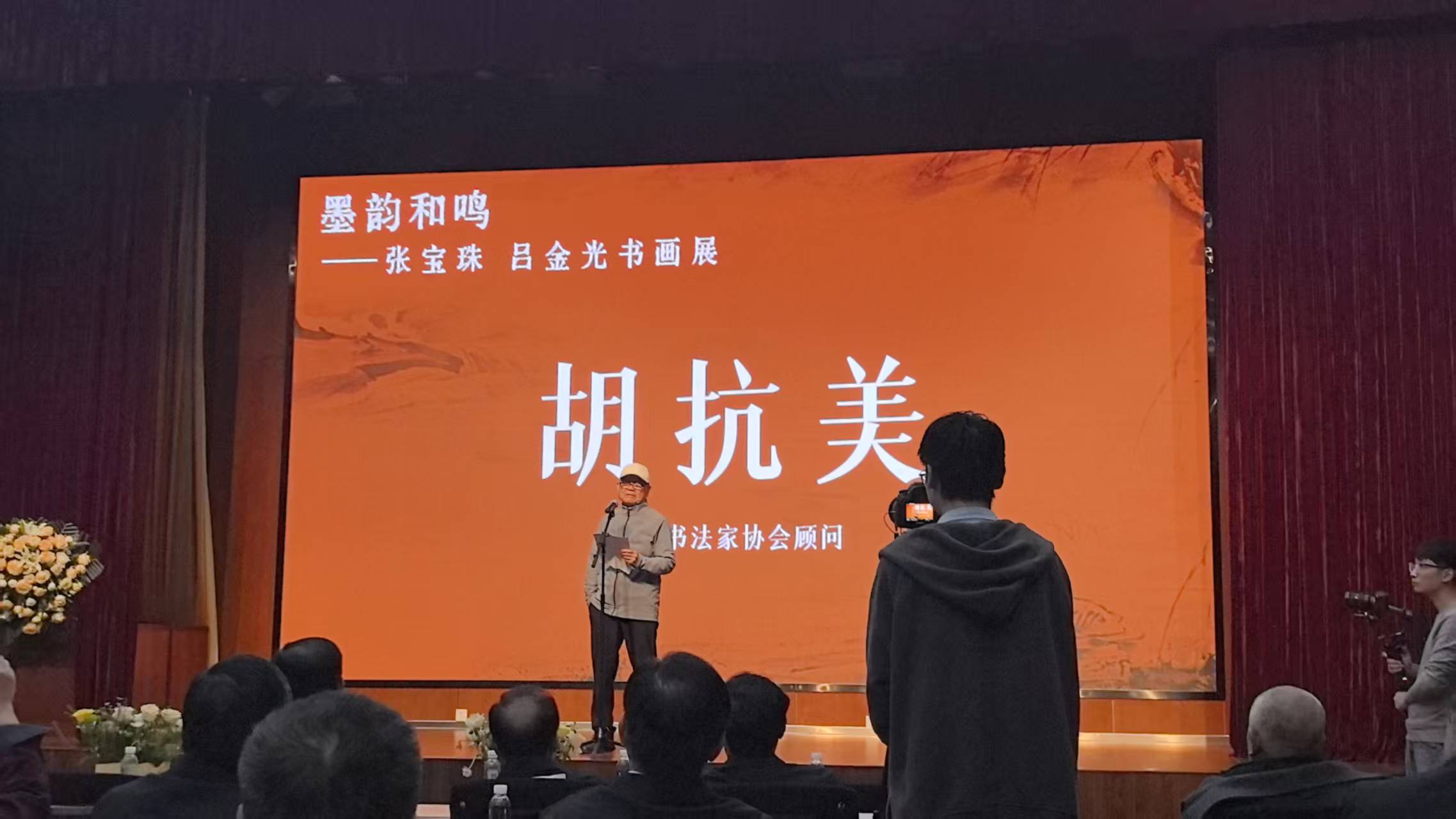 非常荣幸应邀参加“墨韵和鸣”张宝珠吕金光先生书画展开幕式。张宝珠先生是享誉当代画坛的丹青高手、国画大家,是我们青年书协名誉顾问,他笔下的山水风貌与品格,深受齐鲁文化的独特滋养,蕴含着他对齐鲁大地深情厚谊。吕金光先生是备受书坛关注的草书大家,对我们青年书协举办的展览非常支持,他理论造诣深厚,创作实践丰富,在天府之国和齐鲁大地都有很高的知名度美誉度。两位老师“扎根传统,守正出新”,德艺双修,技道并进,用手中的精彩笔墨线条,诠释了中国艺术“书画同源”的本质。两位老师在创作之余,甘当红烛,乐育英才,慧眼识珠,倾囊相授,培养了许多优秀文化艺术人才,今天在现场的就有不少两位先生的弟子,也是我们青年书协的创作骨干。今天的活动,既是两位先生书画精品力作的一次精彩展示,更是两位先生联袂奉献给泉城群众的一次文化盛宴,也是对我们青年文艺后辈的一次现场教学示范!可谓一举多得,功莫大焉,善莫大焉!衷心祝愿展览圆满成功!祝二位老师艺术之树常青,桃李满天下!