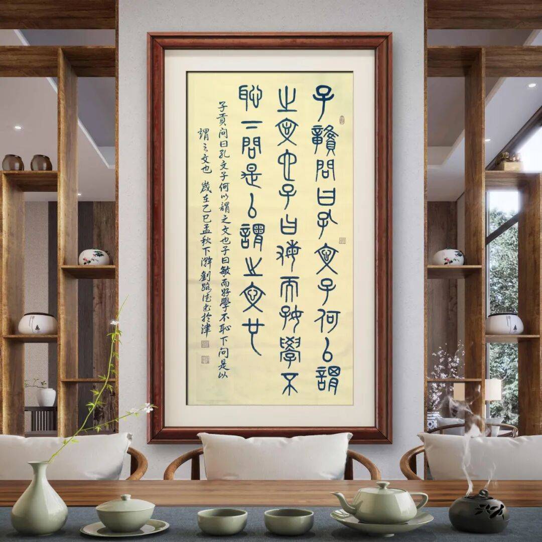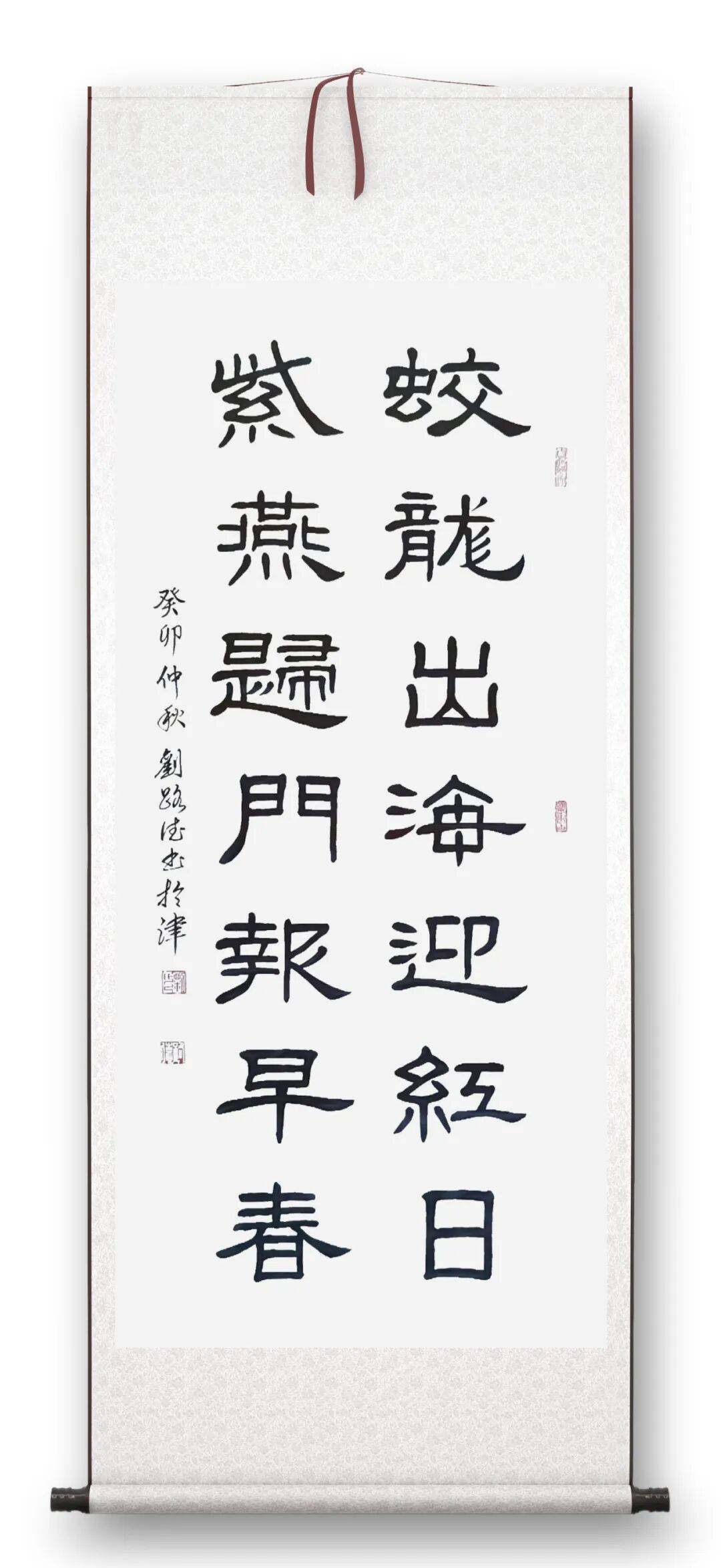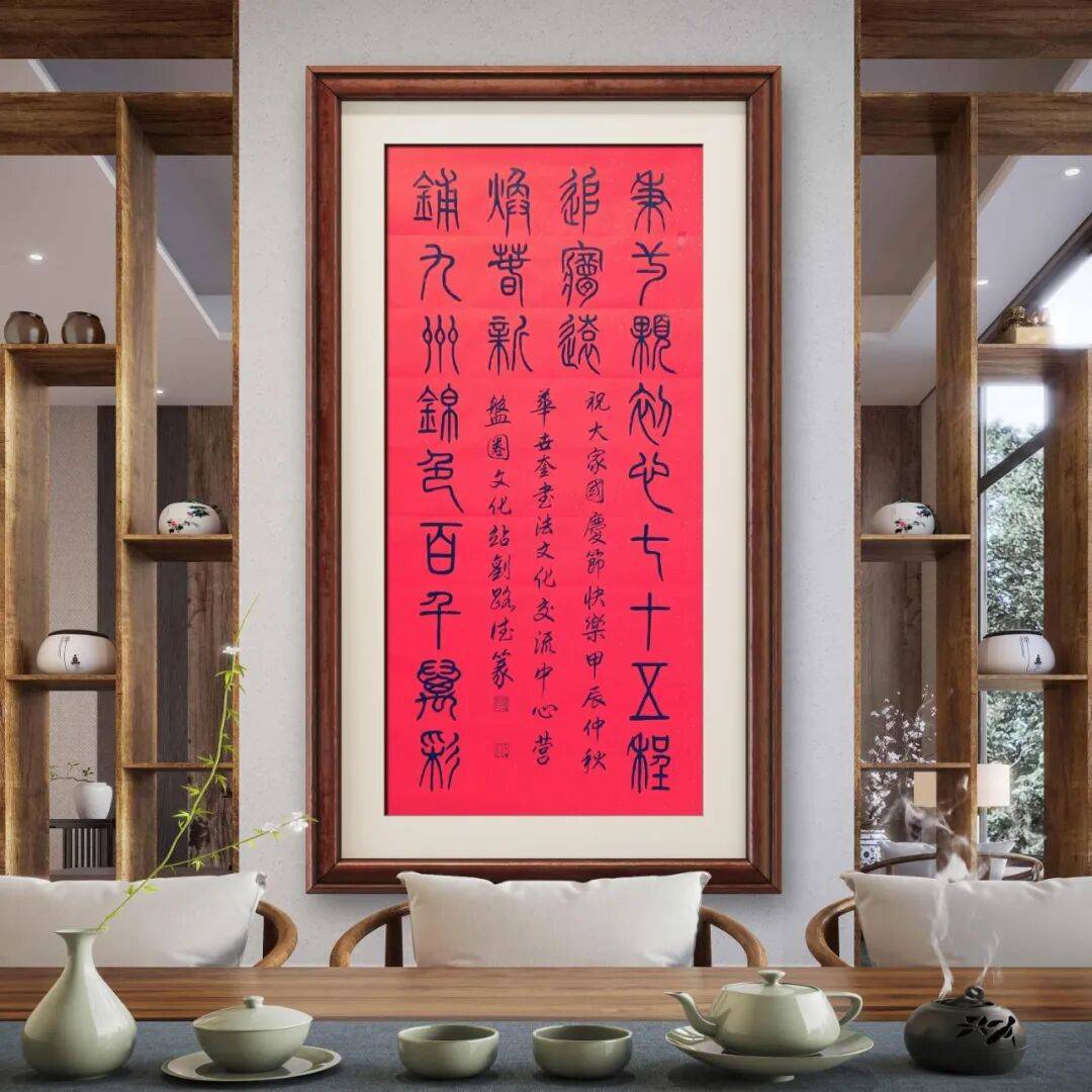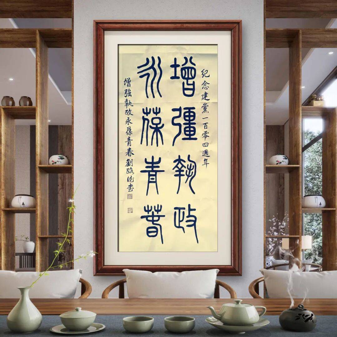 家庭是艺术萌芽的沃土,对于刘路德先生而言,这份对书法的热爱,最初便源于家庭氛围的滋养。在笔墨纸砚相伴的成长环境中,汉字的线条美感与文化内涵早早在他心中扎根。少年时期的他,便对案头的碑帖心生向往,常常凝神观摩长辈挥毫,那份笔墨间的沉静与力量,成为他艺术追求的最初指引。这份与生俱来的亲近感,让他在书法学习的道路上起步便带着温度,也为其日后数十年的坚守埋下了伏笔。篆书作为汉字最古老的书体之一,线条匀净圆润,结体对称端庄,蕴含着原始的古朴之美与先民的智慧。学习篆书,不仅需要扎实的笔法功底,更需要对古文字学的深入了解。刘先生在学习篆书的同时钻研古文字学,从文字的起源与演变入手,了解每个篆字的构形原理与文化内涵。他临习经典篆帖,着重锤炼线条的匀净与结体的对称,力求将篆书的古朴庄重表现得淋漓尽致。其篆书作品,线条如铁线般坚韧,结体匀称端庄,墨色厚重饱满,既展现出篆书的传统风貌,又因其对古文字学的深入研究而更具文化底蕴。