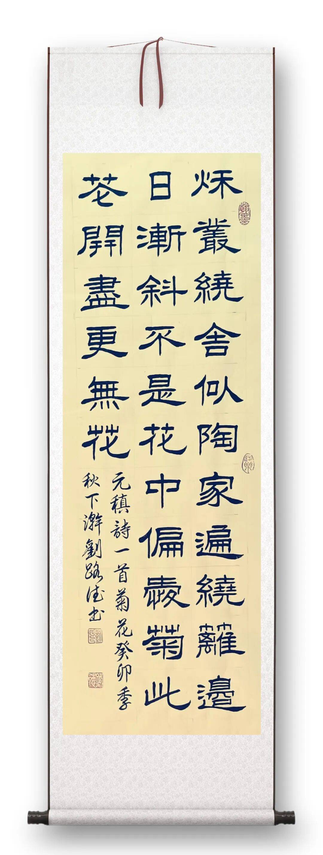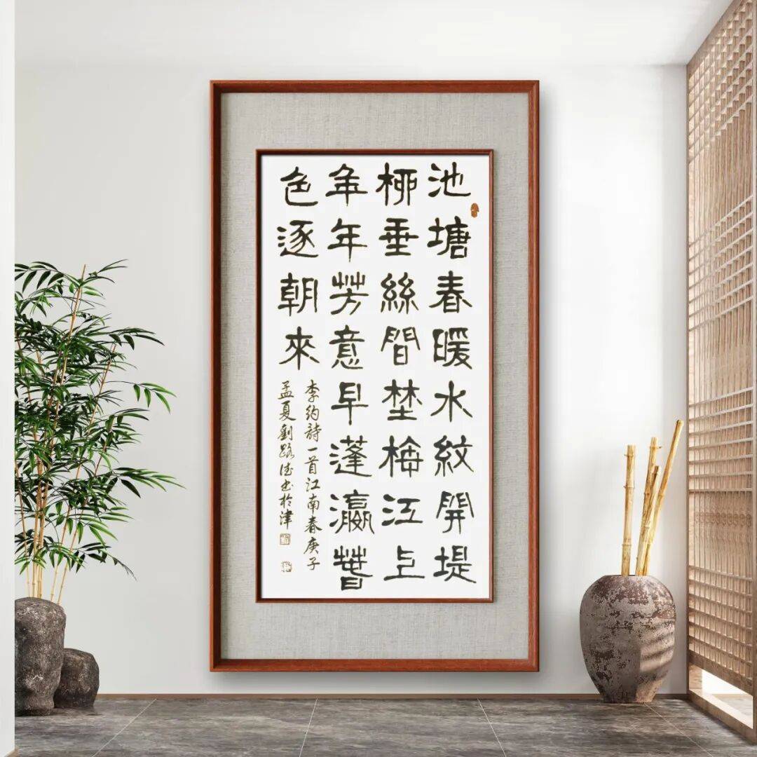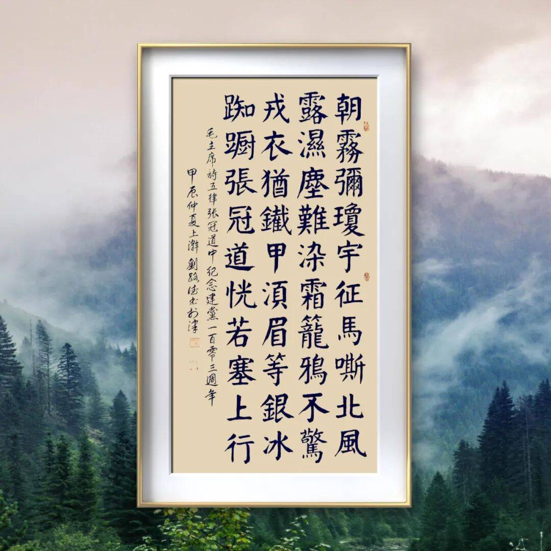他深知隶书的精髓在于“蚕头燕尾”“一波三折”的笔法,因此在书写时格外注重横画的起笔与收锋,力求将隶书的韵味表现得恰到好处。同时,他结合自身的楷书功底,将楷书的严谨结构融入隶书书写之中,使笔下的隶书既保留了古朴厚重的传统风貌,又增添了规范端庄的现代审美,避免了隶书书写中常见的随意与松散。其隶书作品,线条饱满有力,结体匀称宽博,墨色浓淡相宜,既有汉隶的古意,又有个人的理解,展现出扎实的隶书功底与独特的艺术视角。