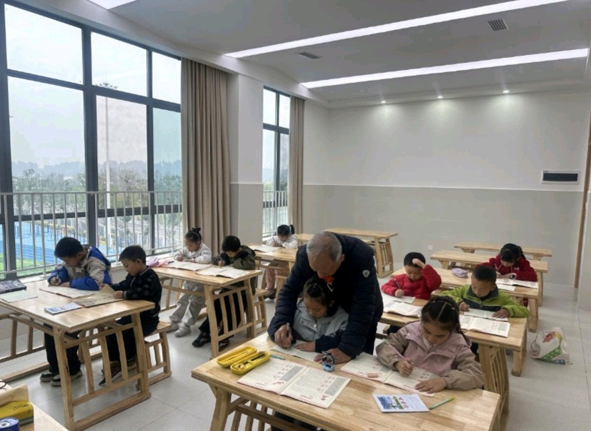“这是书法教学室,每天都有小朋友在这里练习笔墨。”青少年宫负责人王元廷的声音温和而有力量,顺着他指引的方向望去,一群6-7岁的孩子正从二楼教室走出,一张张红扑扑的小脸上满是认真。领头的是青神县书法协会会长黄洪清,他手中还攥着教孩子们的书法练习本,本子上的字迹虽略显稚嫩,却一笔一划透着执着。“这些孩子大多是一年级学生,刚开始接触书法,对笔墨纸砚充满好奇。”黄会长笑着说,每次上课他都会从握笔姿势教起,用生动的故事讲解汉字的起源,让孩子们在潜移默化中感受传统文化的魅力。