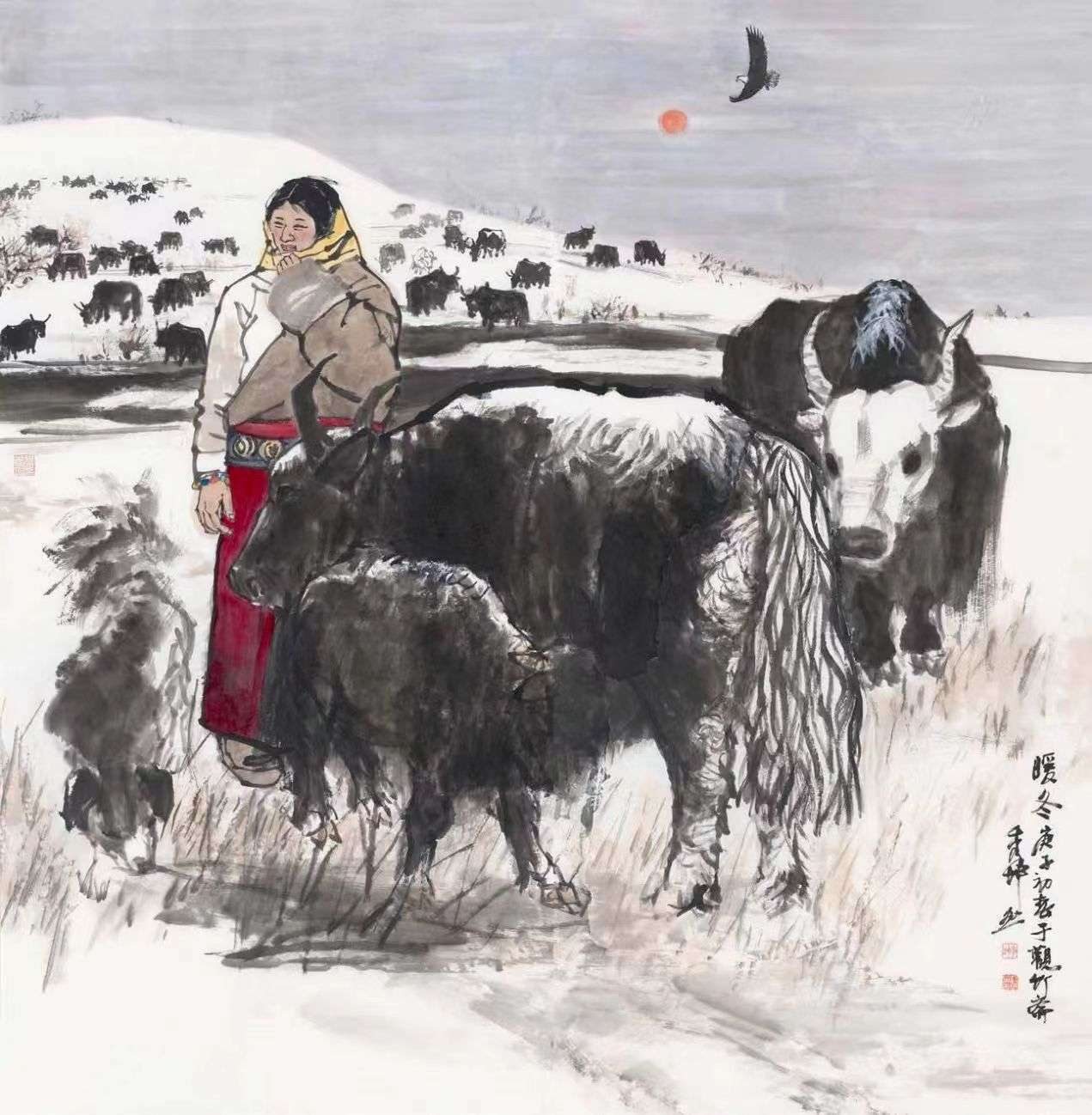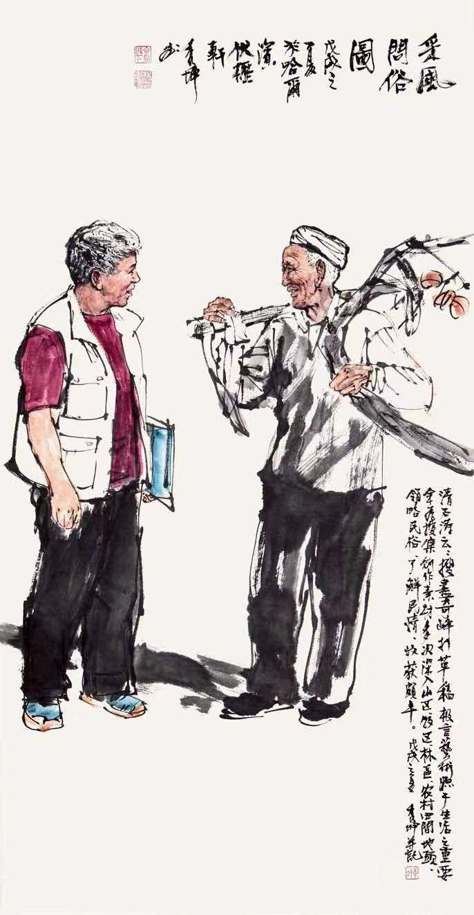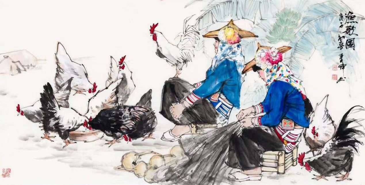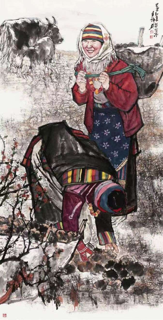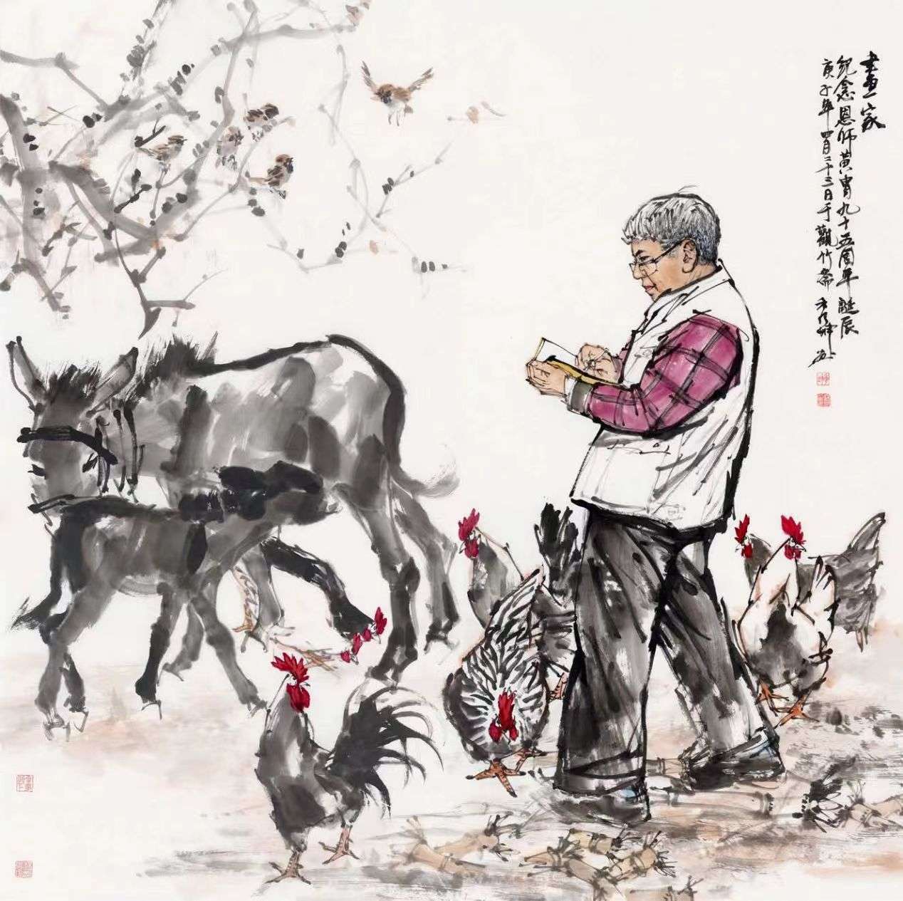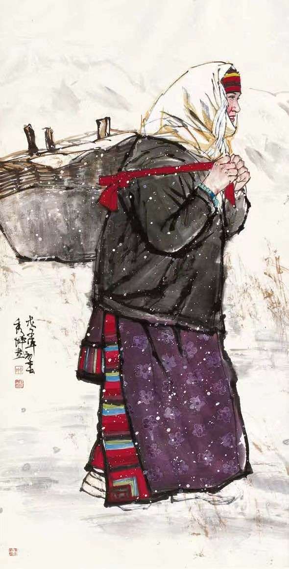 他继承黄胄走生活之路的创作方式,在崇尚传统、热爱生活的基础上,他用传统的笔墨技法和对生活的浓厚情感进行创作,把现实生活中的人物塑造成形神兼备、生动感人的艺术形象。显示了他卓越的笔墨技巧和坚实的写实功力。