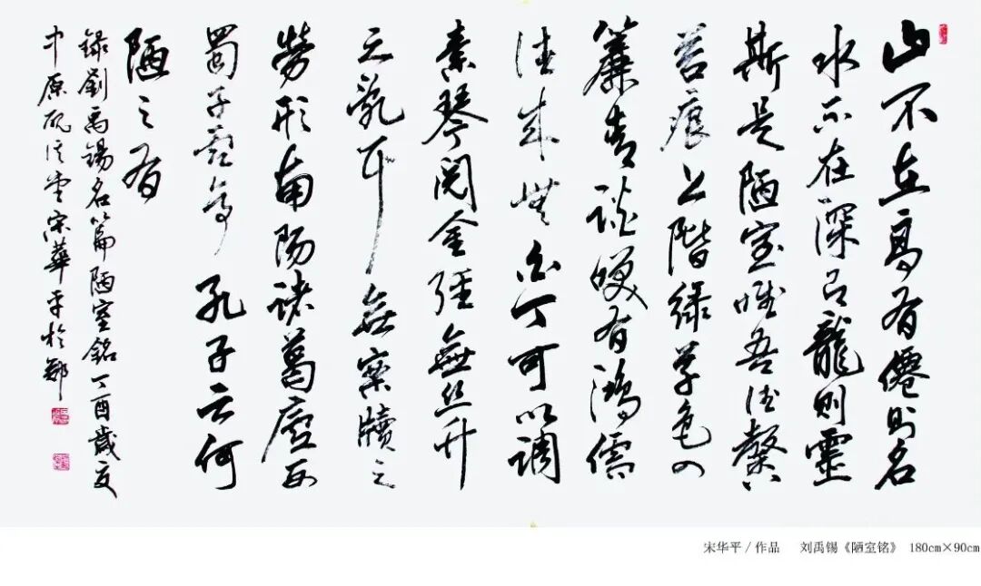 出版有《宋华平书唐诗百首》(河南美术出版社)、《宋华平书法作品集》(河南美术出版社)、《宋华平作品精选》(中国高等艺术院校教学范本、中国文联出版社)、主编《中国书法常用大字典》(四川美术出版社)。有《追求孤高的境界》译文发表。曾獲河南省書法最高獎『龍門獎』金獎(1993年) 。