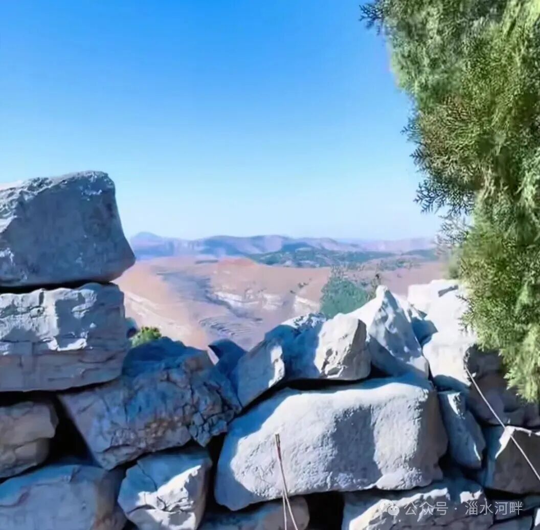 站在山巅极目远眺:向东三十里外,海拔为603米的瑚山(禹王山余脉)轮廓在雾中时隐时现,火车鸣笛声声传来,穿越山川;向北,萌山水库水雾与山雾交融,烟波浩渺;向西,黄家峪、南北石口峪村庄的炊烟穿透云雾袅袅升起;向南,岳峪村北的“大顶寨”在雾中朦胧可见。