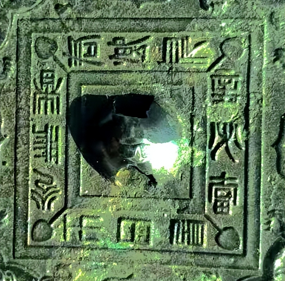 更让人惊叹的是中间方框中的“见日之光,服者君卿,千秋万日,愿勿相忘”十六字铭文,短短数语却涵盖多重寓意,尽显古人的精神追求与情感寄托,堪称汉代铭文铜镜的经典之作。