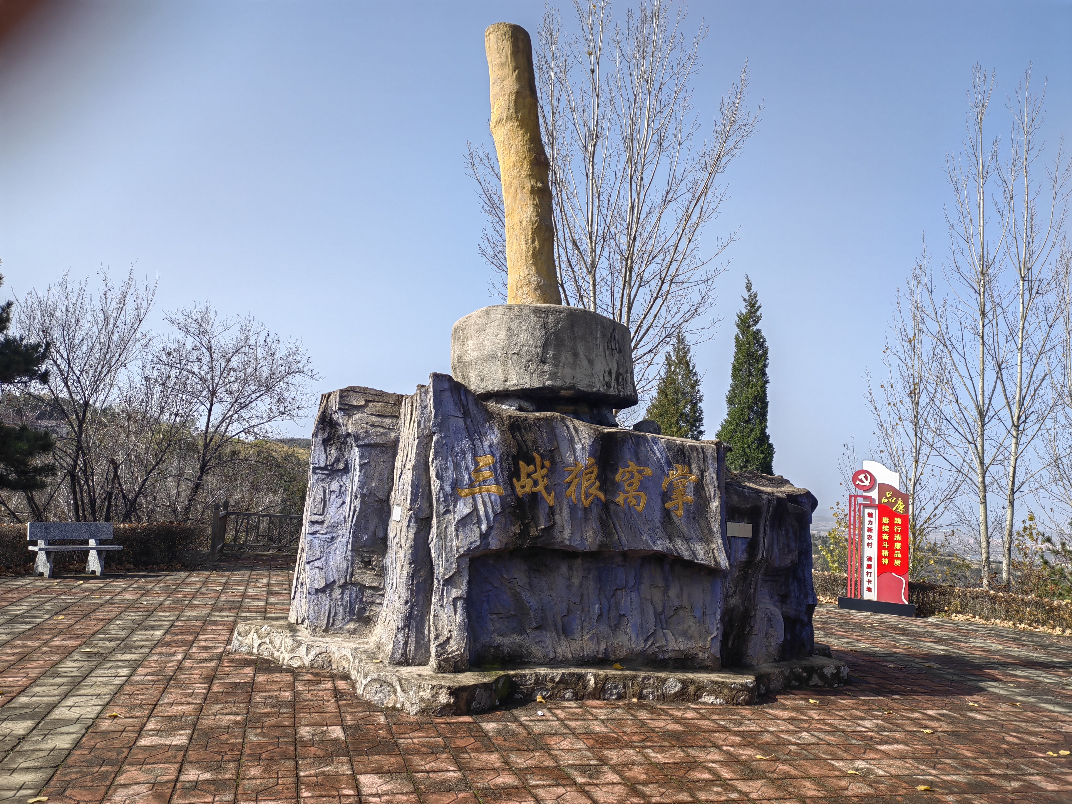 虽已过立冬节气,大寨却还沉浸在深秋的余韵里。脚下的沥青路上铺着片片落叶,一阵风吹来沙沙作响。道旁的老槐树褪去了葱茏,枝桠遒劲地伸向天空,偶有几片迟落的叶子在风中打着旋儿。整个村庄安静得很,除了我们一行三人,难得见到其他游客,只有村口的老碾盘静静卧在那里,碾轮上的沟壑里还嵌着未褪尽的泥土,见证着岁月流转。