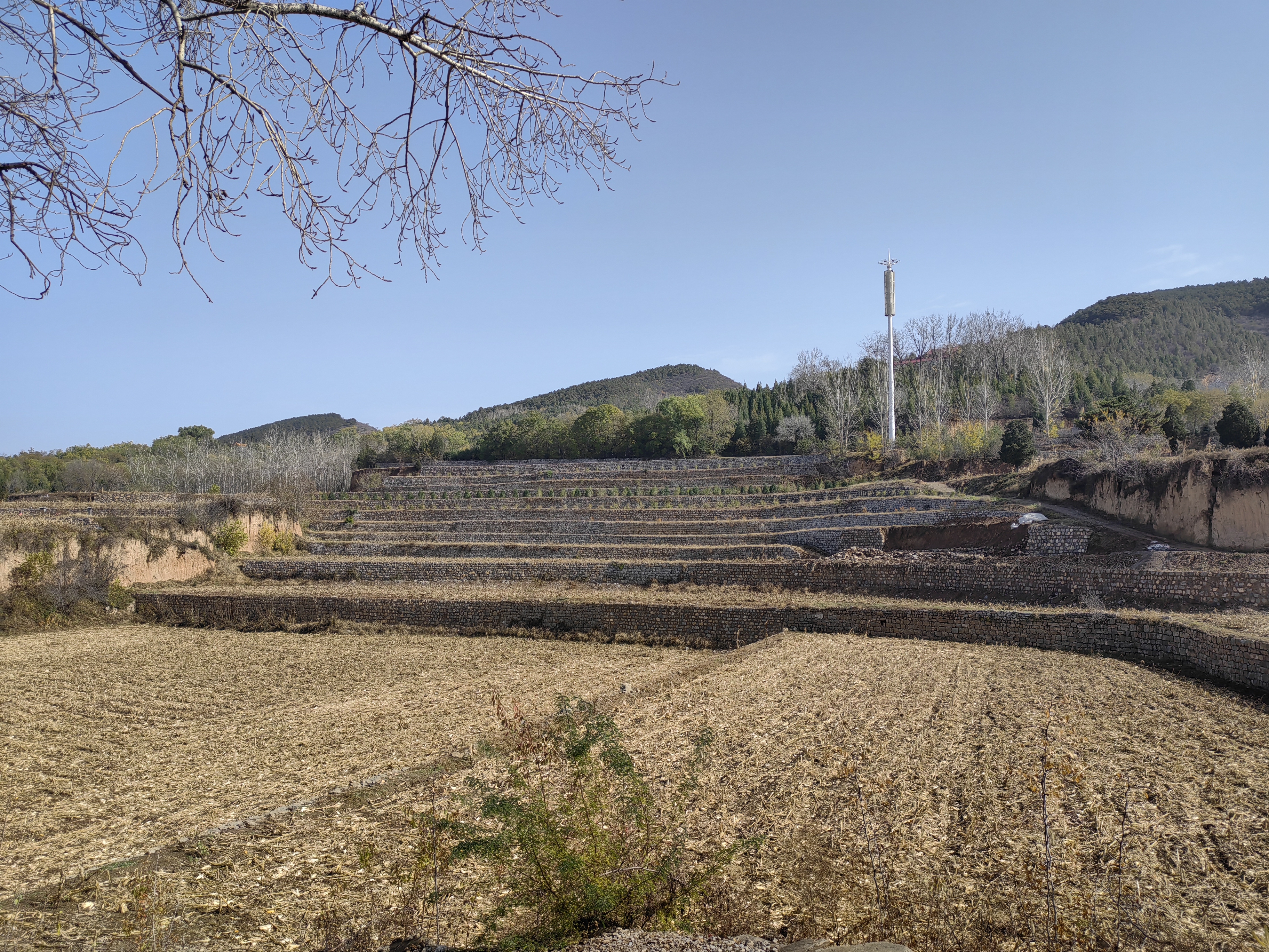 如今的狼窝掌,纪念碑静静地矗立在梯田旁,碑身上的“三战狼窝掌”五个大字历经风雨仍清晰可辨。层层梯田从沟底一直铺到山腰,田埂由大小不一的石块砌成,缝隙间还能看到当年灌注的石灰痕迹。老孙不停地按下快门,庆喜则俯身摸着田埂上的石头,我轻声说:“这每一块石头里,都藏着大寨人一股子不服输的劲儿啊。”我们三人站在纪念碑前合影,身后的梯田如阶梯般延伸向远方。