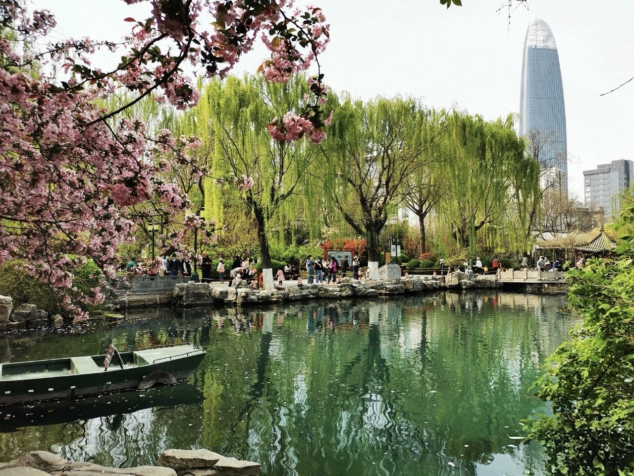 开篇“泉城之神,尽在垂杨”,如金石掷地,定下了全篇的基调。作者将柳与泉这对自然意象提升至城市精神象征的高度,构建起一幅动静相宜的生态画卷。“柳绾春信,泉漱清商”,柳条轻绾住春天的讯息,泉水漱洗出清越的音律,一静一动,一柔一刚,勾勒出济南独特的城市韵律。烟波潋滟中翠影摇曳,画舫参差间柔条拭觞,这不仅是自然景致的描摹,更是城市生活美学的诗意呈现。
