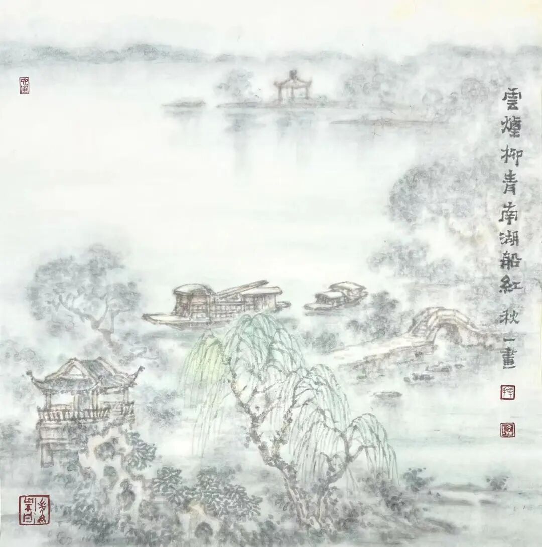凌大纶 别号秋一,1951年6月出生于上海,祖籍浙江湖州。山水画家,擅长描绘水乡田园和古镇风情,以江南烟雨朦胧水气氤氲的表现手法为特色,人称“凌烟云”。曾任嘉兴美术馆馆长、蒲华美术馆馆长、嘉兴画院院长。现为中国美术家协会会员、国家一级美术师、文化部国韵文华书画院艺委会委员、上海江南书画研究院副院长、嘉兴市文史研究馆馆员、嘉兴市政协书画会副会长。