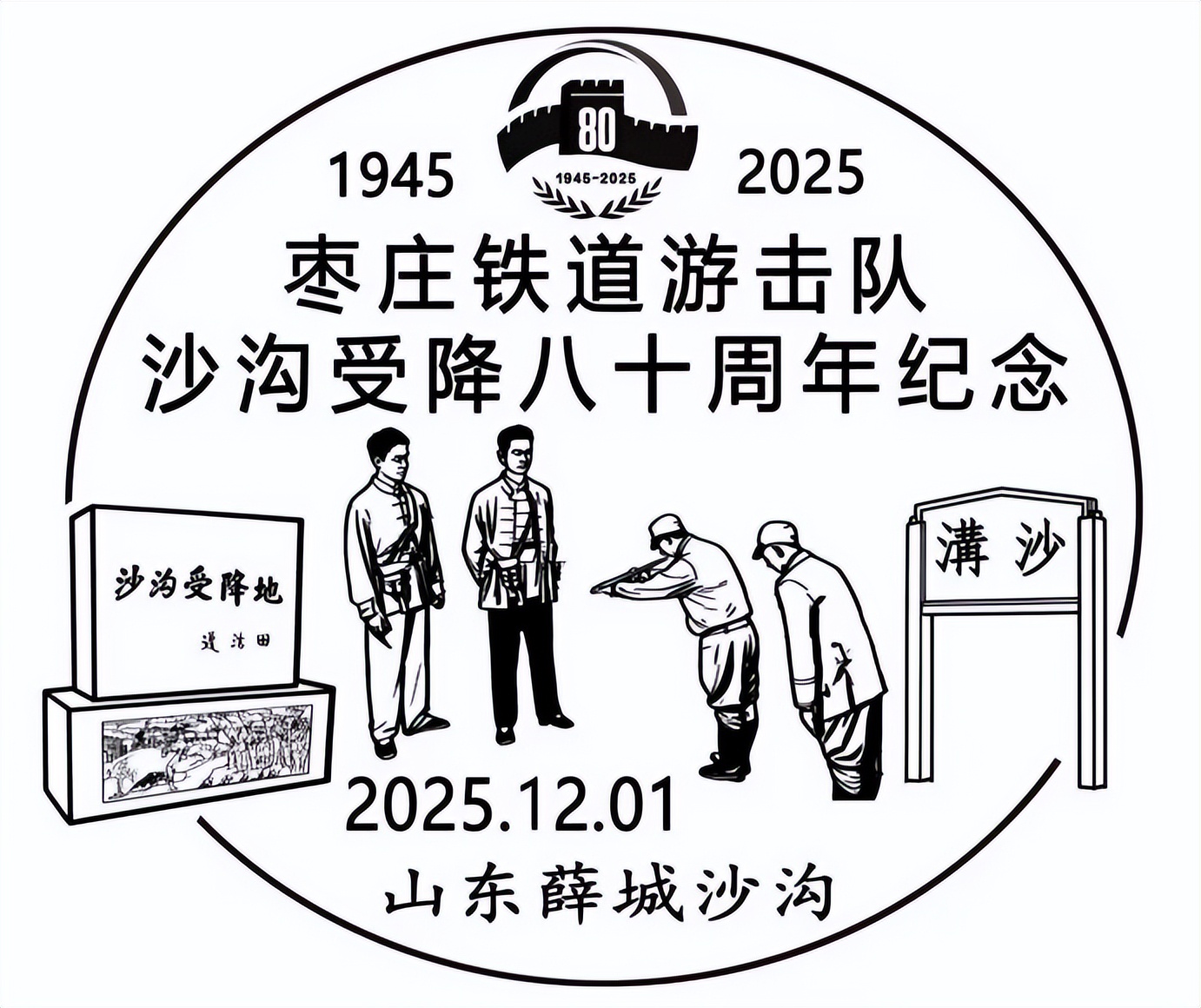 八十年后,由著名邮品设计艺术家任怀平先生亲自设计的一枚纪念封和一枚纪念邮戳在枣庄薛城沙沟镇悄然发行。邮戳落下时,历史在方寸间复活。这不是简单的怀旧,而是一场跨越时空的对话——用邮票语言重述“成建制受降”的军事奇迹,让红色基因在方寸之间生生不息。